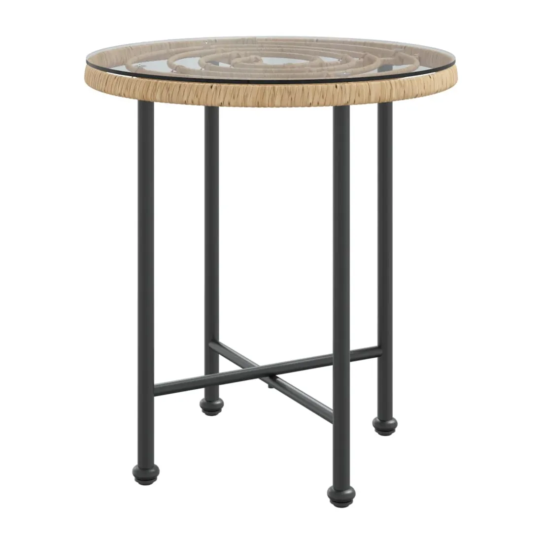 - Matériau : acier, verre trempé, polyéthylène avec un aspect de rotin