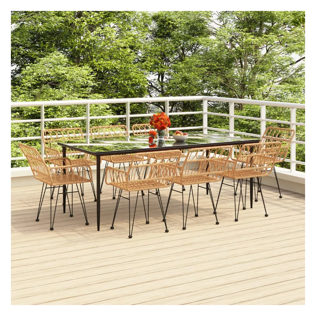 Créez une esthétique convaincante et uniforme dans votre espace extérieur avec cet ensemble de salle à manger de jardin ! Matériau durable : la résine tressée, également connue sous le nom de rotin poly, résiste aux intempéries et est facile à nettoyer. Elle reste belle à l'extérieur pendant une longue période. Elle offre une excellente qualité, commodité et un aspect esthétique.Cadre robuste et stable : les cadres en acier rendent l'ensemble de terrasse robuste et stable pour une utilisation quotidienne à l'extérieur.Dessus de table pratique : le dessus lisse de la table de salle à manger est en verre trempé, facile à nettoyer avec un chiffon humide. De plus, le dessus robuste est parfait pour placer des repas, des boissons et d'autres objets décoratifs.Assise confortable : la chaise de salle à manger est conçue avec un dossier et des accoudoirs pour vous offrir une expérience d'assise confortable.Bouchons de pieds pratiques : l'ensemble de bistro est livré avec des bouchons de pieds qui l'aident à se tenir plus fermement au sol. Remarque :Afin de prolonger la durée de vie de votre mobilier d'extérieur, nous vous recommandons de le protéger avec une housse imperméable.Chaque produit est livré avec un manuel de montage dans la boîte pour un montage facile.