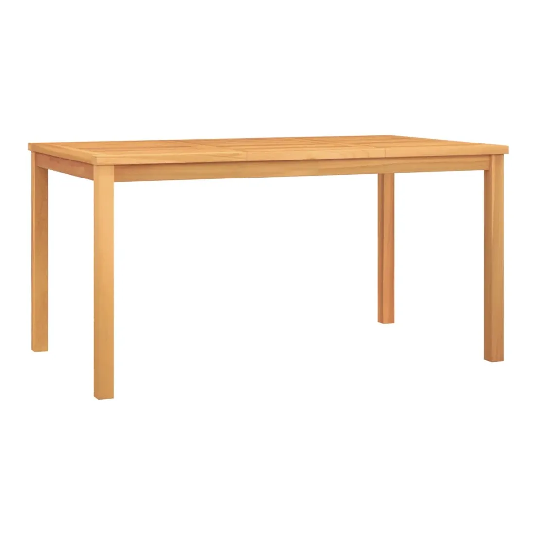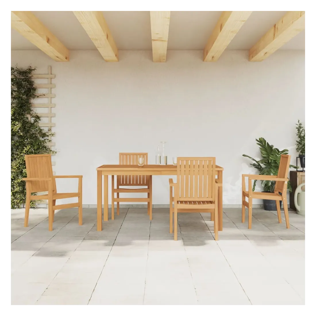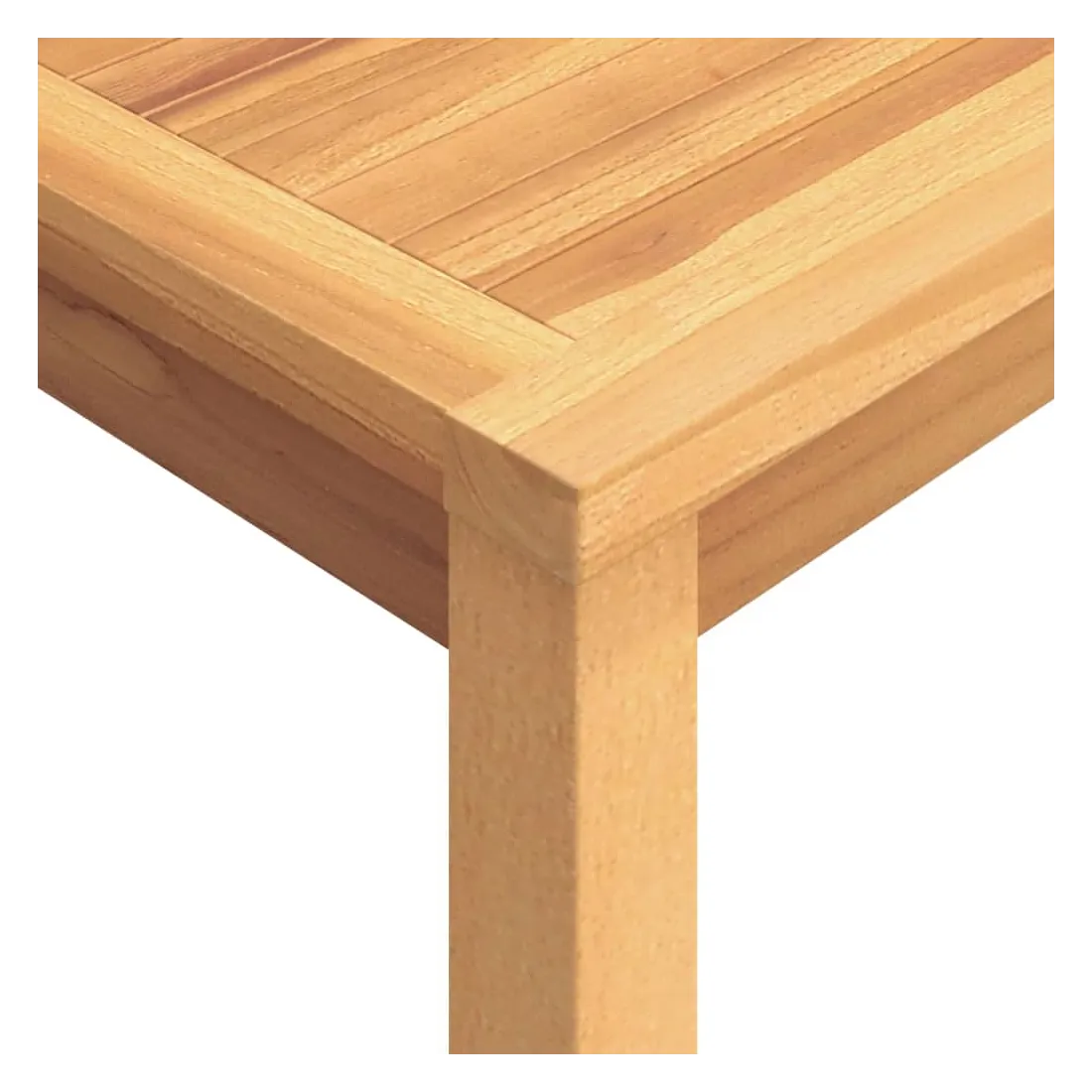 Profitez d'un bon repas ou d'un thé l'après-midi dans votre espace extérieur avec cet ensemble à manger de jardin en bois ! Bois de teck massif : le bois de teck massif est un matériau naturel magnifique. Il a été chevronné, séché au four, puis sablé finement pour lui donner une apparence très lisse. Le bois de teck est connu pour sa résistance exceptionnelle et sa résistance aux intempéries.Dessus de table pratique : le dessus de table robuste de la table à manger permet de placer des collations, des paniers de fruits, des objets décoratifs et d'autres objets nécessaires.Assise confortable : le dossier et les accoudoirs assurent une assise confortable à votre fauteuil de jardin.Fonction empilable : la chaise à manger est empilable pour économiser de l'espace lorsqu'elle n'est pas utilisée.Surface facile à nettoyer : la surface lisse rend l'ensemble de meubles de jardin facile à nettoyer avec un chiffon humide. Bon à savoir :Pour que vos meubles d'extérieur restent beaux, nous vous recommandons de les protéger avec une housse imperméable.