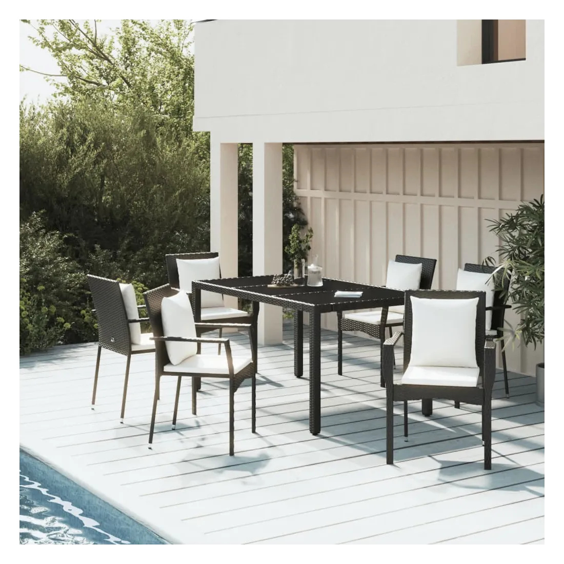 Cet ensemble de salle à manger de jardin tendance, au design élégant et contemporain, est un excellent choix pour manger ou vous détendre dans votre jardin. Matériau résistant aux intempéries : la résine tressée, également connue sous le nom de rotin poly, résiste aux intempéries et est facile à nettoyer. Elle reste belle à l'extérieur pendant une longue période. Elle offre une excellente qualité, commodité et un aspect esthétique.Cadre robuste : les cadres en acier enduit de poudre rendent l'ensemble de salle à manger d'extérieur robuste et stable pour une utilisation quotidienne à l'extérieur.Dessus de table pratique : le dessus de table en bois d'acacia massif est parfait pour placer des boissons, des aliments et des décorations. Il a une belle apparence et est facile à nettoyer.Conception modulaire : l'ensemble de salle à manger de jardin est flexible et facile à déplacer, vous pouvez donc le combiner avec d'autres segments modulaires dans la boutique en ligne pour créer vos propres configurations d'ensemble de salle à manger de jardin !Expérience d'assise confortable : le dossier ajoute un confort d'assise supplémentaire à la chaise de jardin. De plus, les coussins bien rembourrés vous permettent de vous asseoir confortablement. Bon à savoir :Pour faciliter au maximum le montage, chaque produit est livré avec des instructions. Remarque :Pour que vos meubles d'extérieur restent beaux, nous vous recommandons de les protéger avec une housse imperméable.
