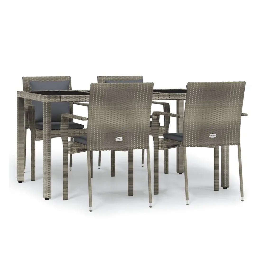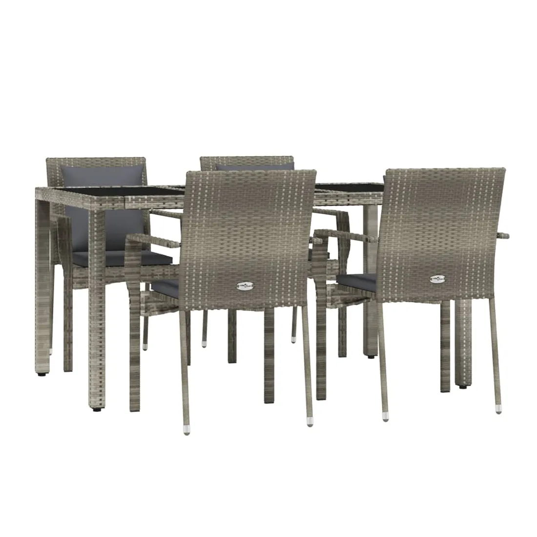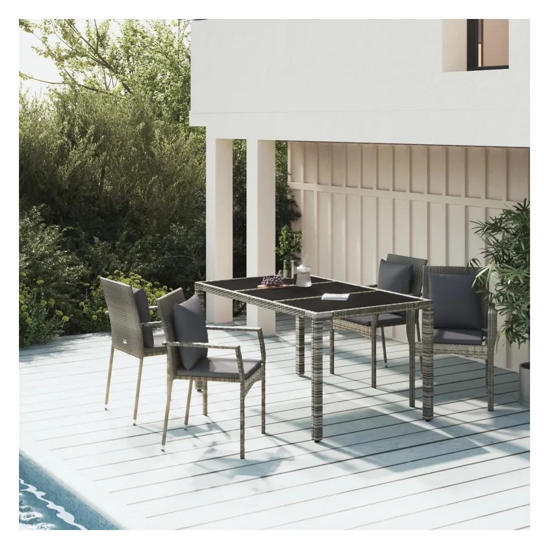 Cet ensemble de salle à manger de jardin tendance, au design élégant et contemporain, est un excellent choix pour manger ou vous détendre dans votre jardin. Matériau résistant aux intempéries : la résine tressée, également connue sous le nom de rotin poly, résiste aux intempéries et est facile à nettoyer. Elle reste belle à l'extérieur pendant une longue période. Elle offre une excellente qualité, commodité et un aspect esthétique.Cadre robuste : les cadres en acier enduit de poudre rendent l'ensemble de salle à manger d'extérieur robuste et stable pour une utilisation quotidienne à l'extérieur.Dessus de table pratique : le dessus lisse de la table de jardin est en verre trempé, facile à nettoyer avec un chiffon humide. De plus, le dessus robuste est parfait pour placer des repas, des boissons et d'autres objets décoratifs.Conception modulaire : l'ensemble de salle à manger de jardin est flexible et facile à déplacer, vous pouvez donc le combiner avec d'autres segments modulaires dans la boutique en ligne pour créer vos propres configurations d'ensemble de salle à manger de jardin !Expérience d'assise confortable : le dossier ajoute un confort d'assise supplémentaire à la chaise de jardin. De plus, les coussins bien rembourrés vous permettent de vous asseoir confortablement. Bon à savoir :Pour faciliter au maximum le montage, chaque produit est livré avec des instructions. Remarque :Pour que vos meubles d'extérieur restent beaux, nous vous recommandons de les protéger avec une housse imperméable.