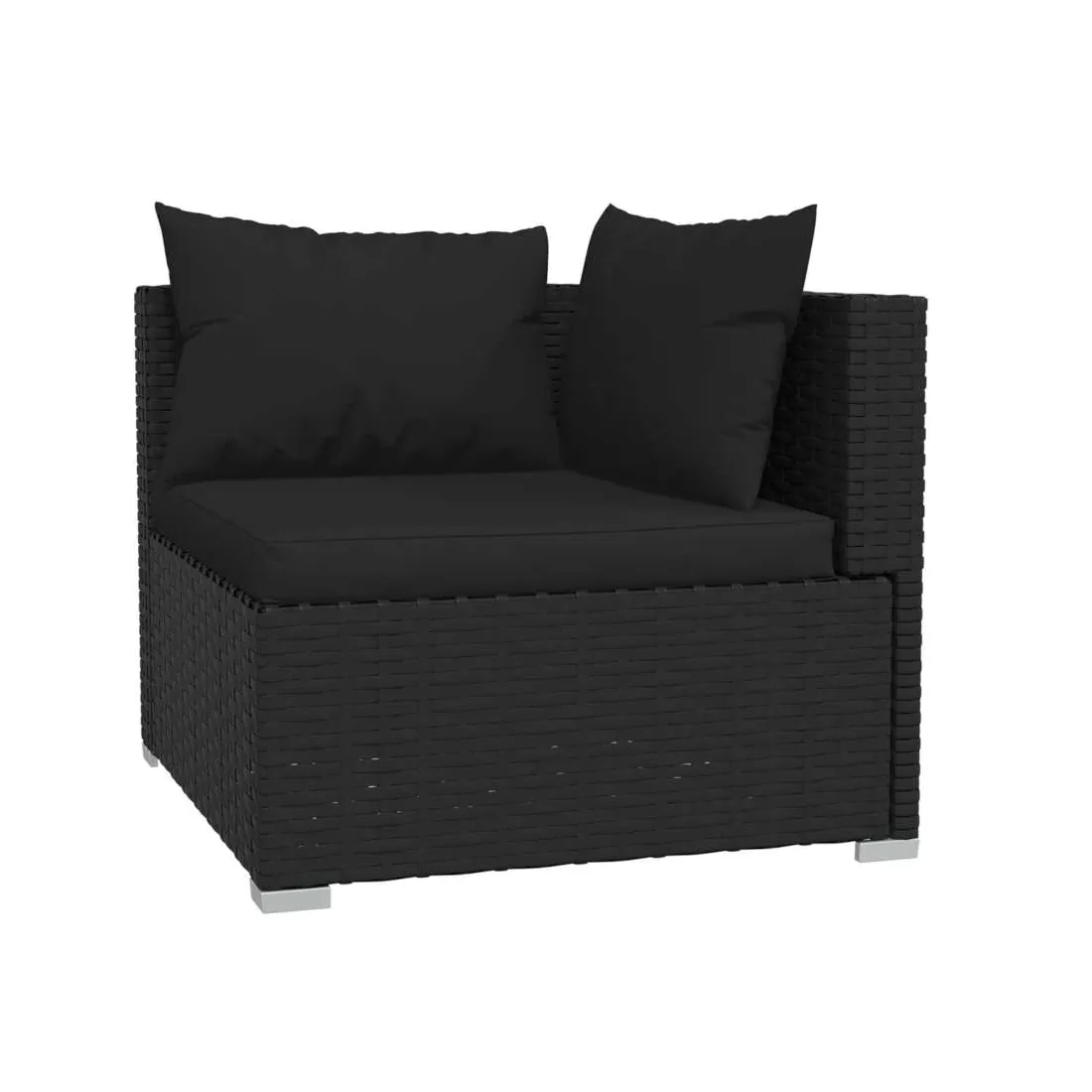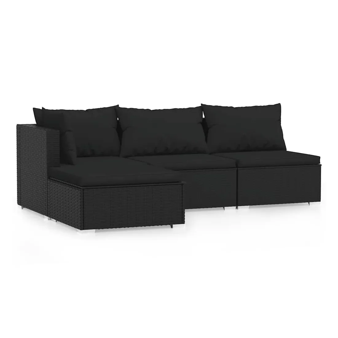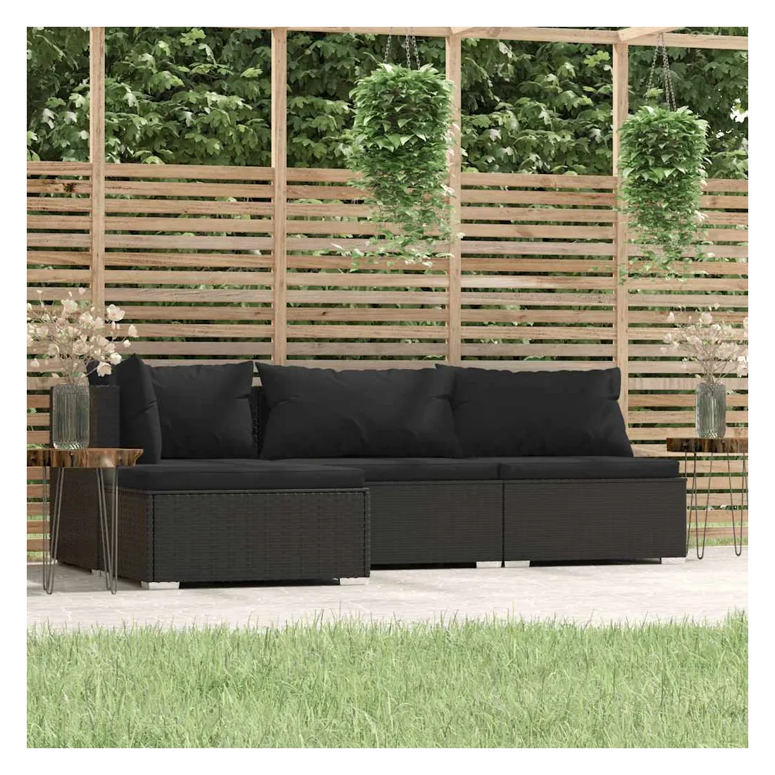 Salon de jardin 4 pcs avec coussins Noir Résine tressée