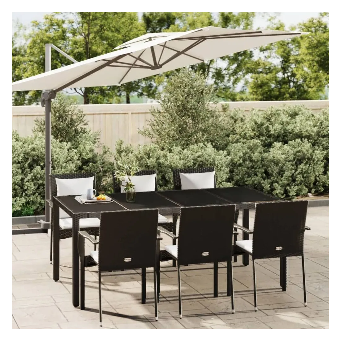 Cet ensemble de salle à manger de jardin tendance, au design élégant et contemporain, est un excellent choix pour manger ou vous détendre dans votre jardin. Matériau résistant aux intempéries : la résine tressée, également connue sous le nom de rotin poly, résiste aux intempéries et est facile à nettoyer. Elle reste belle à l'extérieur pendant une longue période. Elle offre une excellente qualité, commodité et un aspect esthétique.Cadre robuste : les cadres en acier enduit de poudre rendent l'ensemble de salle à manger d'extérieur robuste et stable pour une utilisation quotidienne à l'extérieur.Dessus de table pratique : le dessus de table en bois d'acacia massif est parfait pour placer des boissons, des aliments et des décorations. Il a une belle apparence et est facile à nettoyer.Conception modulaire : l'ensemble de salle à manger de jardin est flexible et facile à déplacer, vous pouvez donc le combiner avec d'autres segments modulaires dans la boutique en ligne pour créer vos propres configurations d'ensemble de salle à manger de jardin !Expérience d'assise confortable : le dossier ajoute un confort d'assise supplémentaire à la chaise de jardin. De plus, les coussins bien rembourrés vous permettent de vous asseoir confortablement. Bon à savoir :Pour faciliter au maximum le montage, chaque produit est livré avec des instructions. Remarque :Pour que vos meubles d'extérieur restent beaux, nous vous recommandons de les protéger avec une housse imperméable.