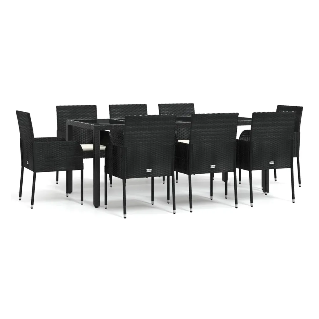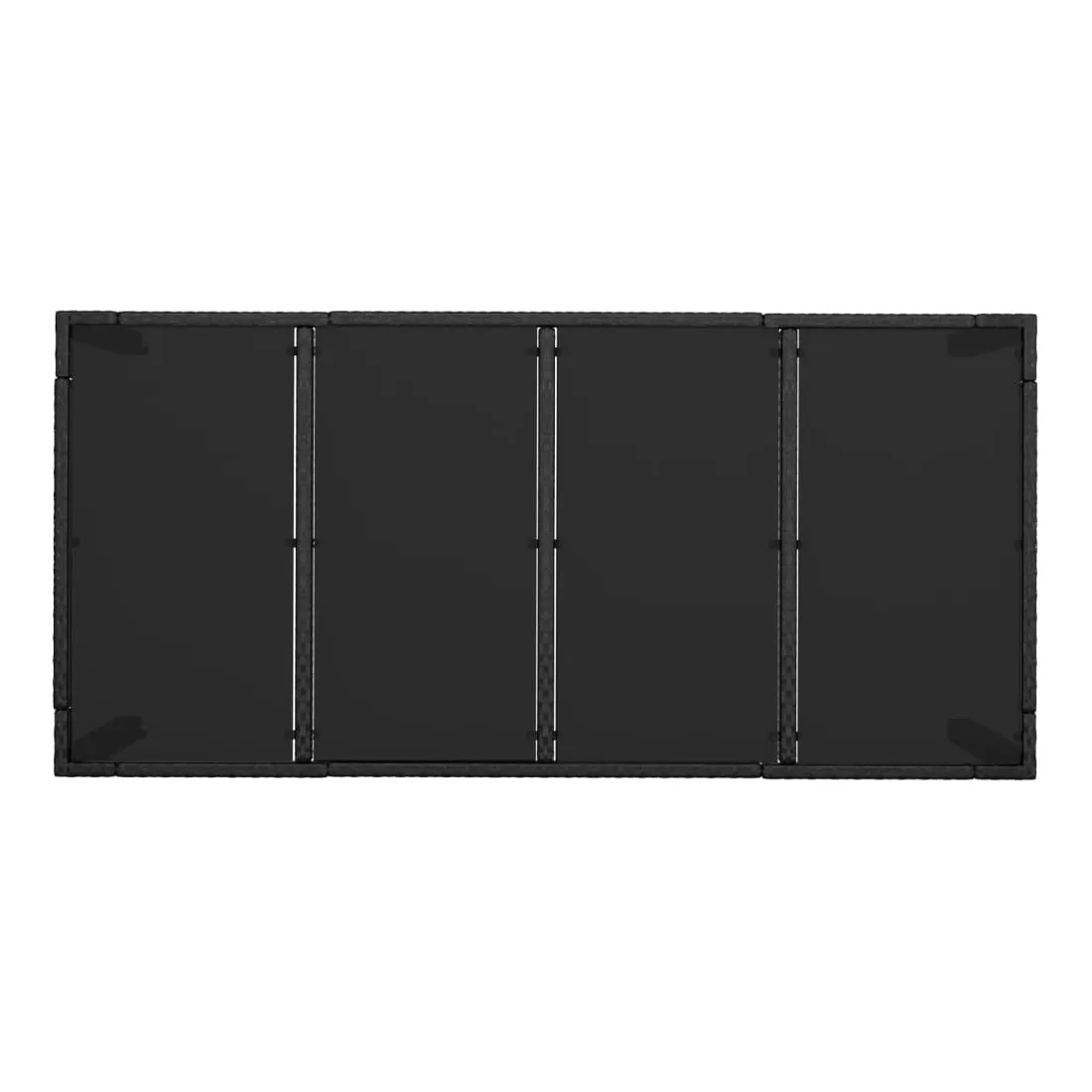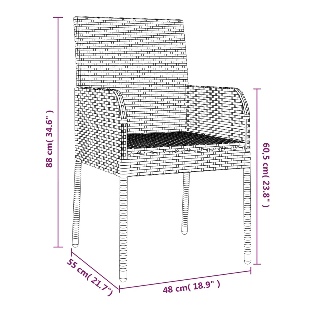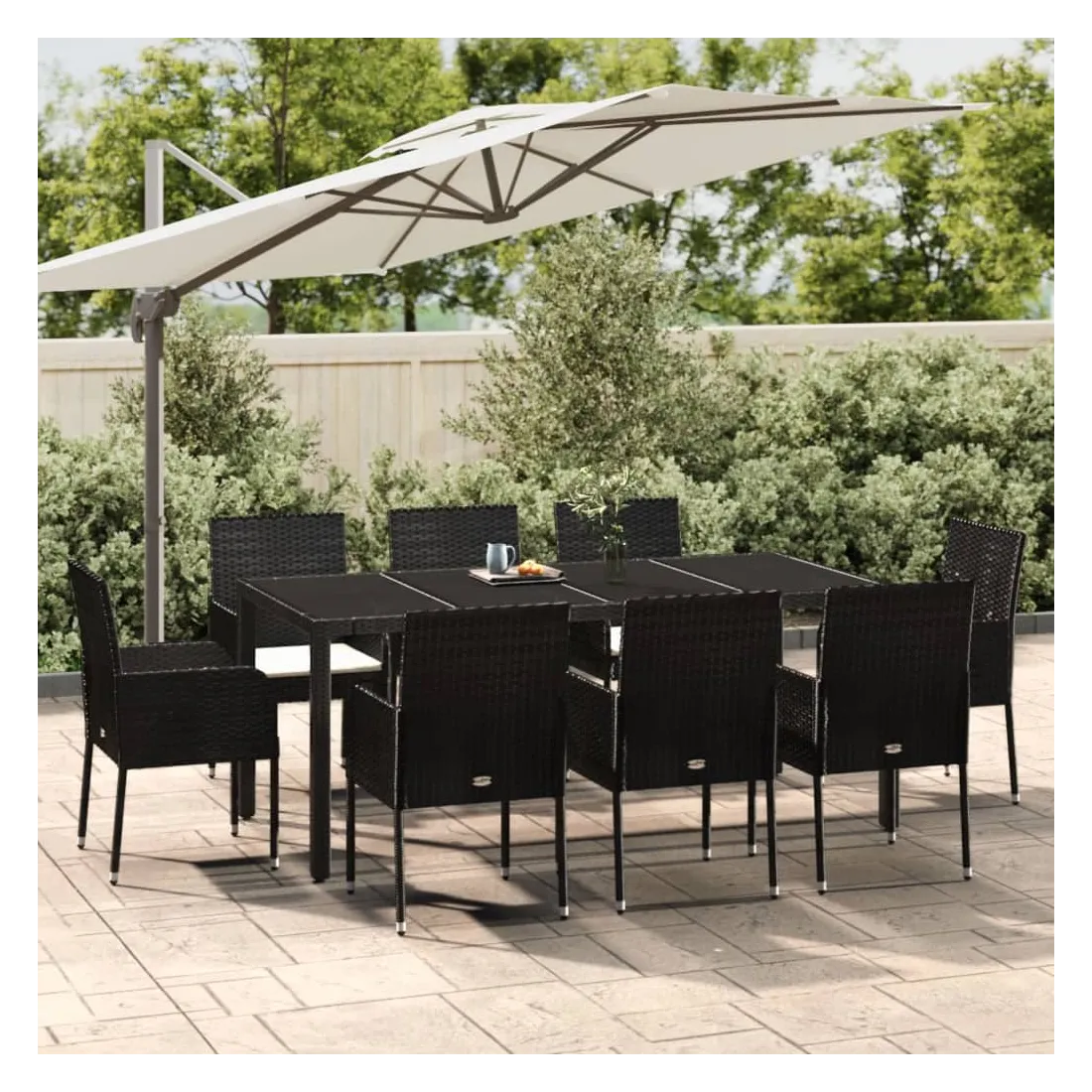 Cet ensemble de salle à manger de jardin tendance, au design élégant et contemporain, est un excellent choix pour manger ou vous détendre dans votre jardin. Matériau résistant aux intempéries : la résine tressée, également connue sous le nom de rotin poly, résiste aux intempéries et est facile à nettoyer. Elle reste belle à l'extérieur pendant une longue période. Elle offre une excellente qualité, commodité et un aspect esthétique.Cadre robuste : les cadres en acier enduit de poudre rendent l'ensemble de salle à manger d'extérieur robuste et stable pour une utilisation quotidienne à l'extérieur.Dessus de table pratique : le dessus lisse de la table de jardin est en verre trempé, facile à nettoyer avec un chiffon humide. De plus, le dessus robuste est parfait pour placer des repas, des boissons et d'autres objets décoratifs.Conception modulaire : l'ensemble de salle à manger de jardin est flexible et facile à déplacer, vous pouvez donc le combiner avec d'autres segments modulaires dans la boutique en ligne pour créer vos propres configurations d'ensemble de salle à manger de jardin !Expérience d'assise confortable : le dossier ajoute un confort d'assise supplémentaire à la chaise de jardin. De plus, les coussins bien rembourrés vous permettent de vous asseoir confortablement. Bon à savoir :Pour faciliter au maximum le montage, chaque produit est livré avec des instructions. Remarque :Pour que vos meubles d'extérieur restent beaux, nous vous recommandons de les protéger avec une housse imperméable.