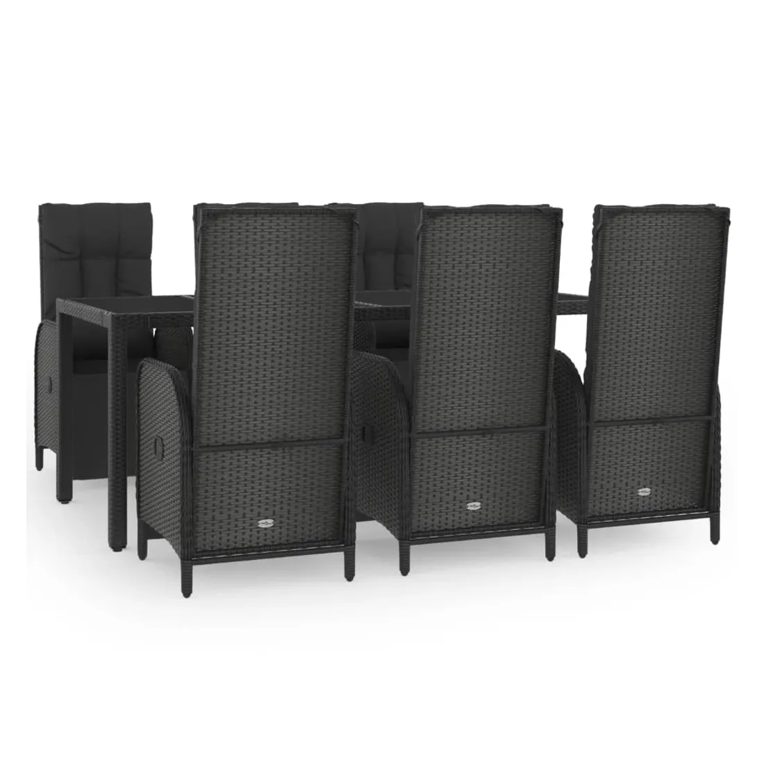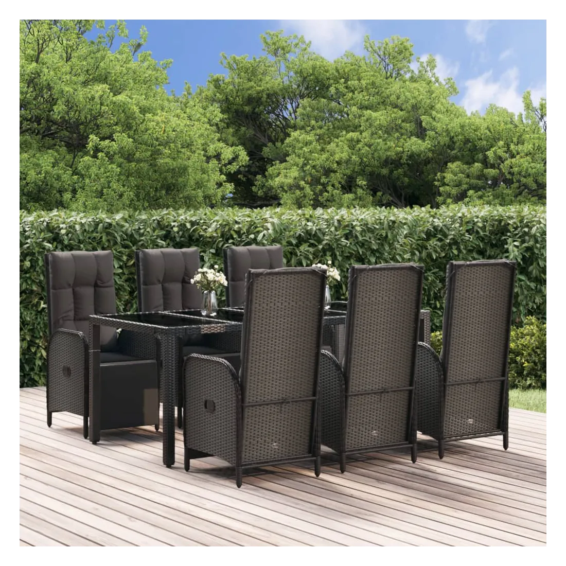 Cet ensemble de salle à manger de jardin tendance, au design élégant et contemporain, est un excellent choix pour manger ou vous détendre dans votre jardin. Matériau résistant aux intempéries : la résine tressée, également connue sous le nom de rotin poly, résiste aux intempéries et est facile à nettoyer. Elle reste belle à l'extérieur pendant une longue période. Elle offre une excellente qualité, commodité et un aspect esthétique.Cadre robuste : les cadres en acier enduit de poudre rendent l'ensemble de salle à manger d'extérieur robuste et stable pour une utilisation quotidienne à l'extérieur.Dessus de table pratique : le dessus lisse de la table de jardin est en verre trempé, facile à nettoyer avec un chiffon humide. De plus, le dessus robuste est parfait pour placer des repas, des boissons et d'autres objets décoratifs.Fonction d'inclinaison : les chaises de jardin sont spécialement conçues avec une fonction d'inclinaison afin que vous puissiez régler le dossier selon votre confort.Expérience d'assise confortable : le dossier ajoute un confort d'assise supplémentaire à la chaise de jardin. De plus, les coussins bien rembourrés vous permettent de vous asseoir confortablement. Bon à savoir :Pour faciliter au maximum le montage, chaque produit est livré avec des instructions. Remarque :Pour que vos meubles d'extérieur restent beaux, nous vous recommandons de les protéger avec une housse imperméable.