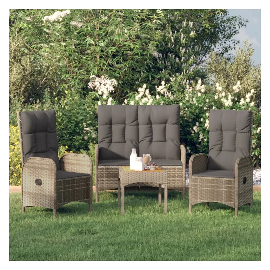 Cet ensemble de salle à manger de jardin tendance, au design élégant et contemporain, est un excellent choix pour manger ou vous détendre dans votre jardin. Matériau résistant aux intempéries : la résine tressée, également connue sous le nom de rotin poly, résiste aux intempéries et est facile à nettoyer. Elle reste belle à l'extérieur pendant une longue période. Elle offre une excellente qualité, commodité et un aspect esthétique.Cadre robuste : les cadres en acier enduit de poudre rendent l'ensemble de salle à manger d'extérieur robuste et stable pour une utilisation quotidienne à l'extérieur.Dessus de table pratique : le dessus lisse de la table de jardin est en verre trempé, facile à nettoyer avec un chiffon humide. De plus, le dessus robuste est parfait pour placer des repas, des boissons et d'autres objets décoratifs.Fonction d'inclinaison : les chaises de jardin sont spécialement conçues avec une fonction d'inclinaison afin que vous puissiez régler le dossier selon votre confort.Expérience d'assise confortable : le dossier ajoute un confort d'assise supplémentaire à la chaise de jardin. De plus, les coussins bien rembourrés vous permettent de vous asseoir confortablement. Bon à savoir :Pour faciliter au maximum le montage, chaque produit est livré avec des instructions. Remarque :Pour que vos meubles d'extérieur restent beaux, nous vous recommandons de les protéger avec une housse imperméable.