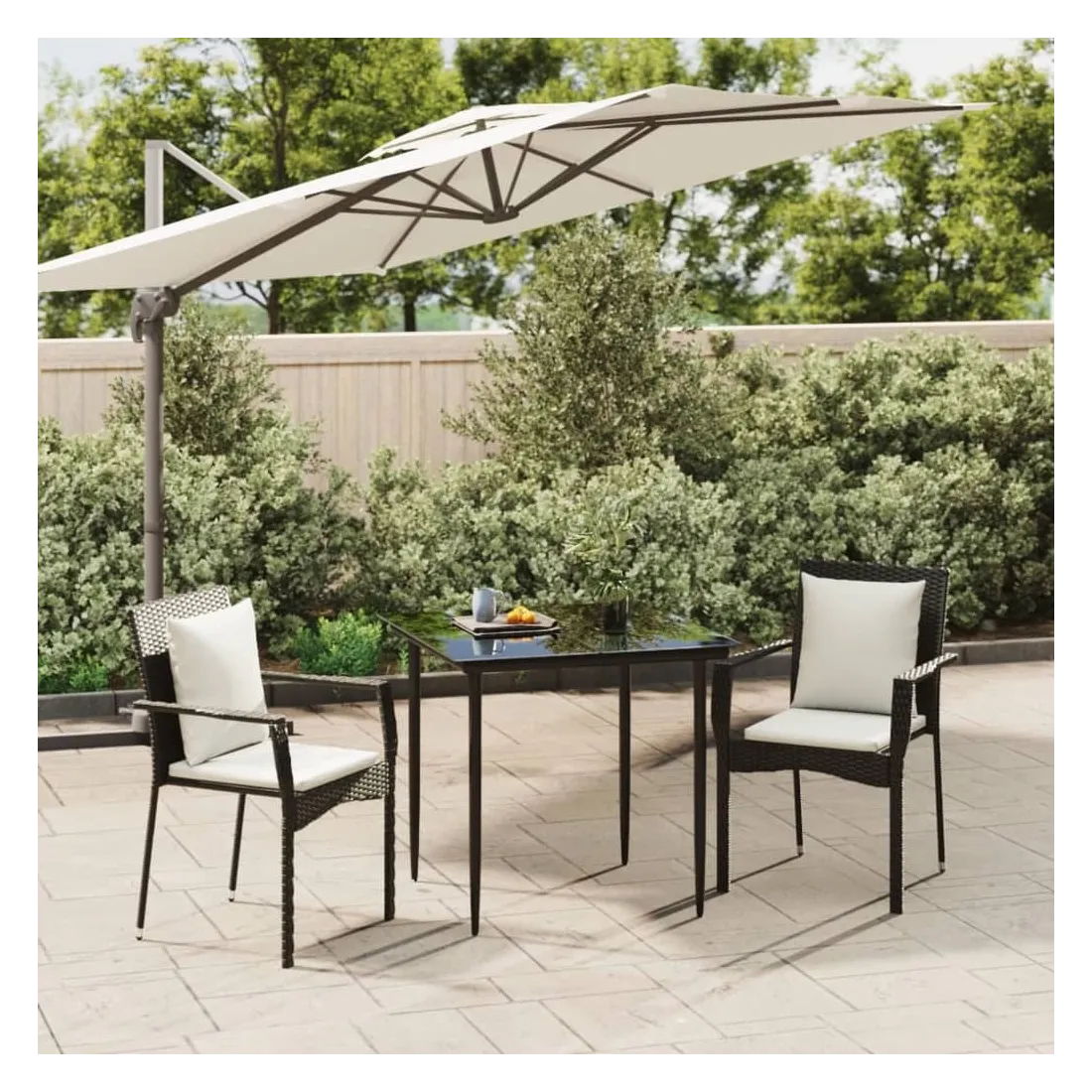 Cet ensemble de salle à manger de jardin tendance, au design élégant et contemporain, est un excellent choix pour manger ou vous détendre dans votre jardin. Matériau résistant aux intempéries : la résine tressée, également connue sous le nom de rotin poly, résiste aux intempéries et est facile à nettoyer. Elle reste belle à l'extérieur pendant une longue période. Elle offre une excellente qualité, commodité et un aspect esthétique.Cadre robuste : les cadres en acier enduit de poudre rendent l'ensemble de salle à manger d'extérieur robuste et stable pour une utilisation quotidienne à l'extérieur.Dessus de table pratique : le dessus lisse de la table de jardin est en verre trempé, facile à nettoyer avec un chiffon humide. De plus, le dessus robuste est parfait pour placer des repas, des boissons et d'autres objets décoratifs.Conception modulaire : l'ensemble de salle à manger de jardin est flexible et facile à déplacer, vous pouvez donc le combiner avec d'autres segments modulaires dans la boutique en ligne pour créer vos propres configurations d'ensemble de salle à manger de jardin !Expérience d'assise confortable : le dossier ajoute un confort d'assise supplémentaire à la chaise de jardin. De plus, les coussins bien rembourrés vous permettent de vous asseoir confortablement. Bon à savoir :Pour faciliter au maximum le montage, chaque produit est livré avec des instructions. Remarque :Pour que vos meubles d'extérieur restent beaux, nous vous recommandons de les protéger avec une housse imperméable.
