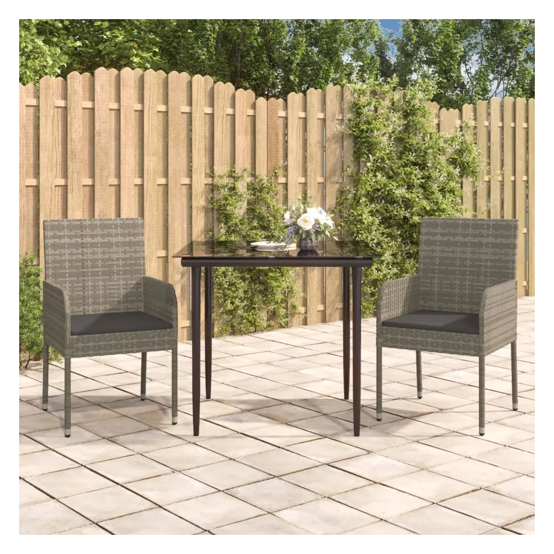 Cet ensemble de salle à manger de jardin tendance, au design élégant et contemporain, est un excellent choix pour manger ou vous détendre dans votre jardin. Matériau résistant aux intempéries : la résine tressée, également connue sous le nom de rotin poly, résiste aux intempéries et est facile à nettoyer. Elle reste belle à l'extérieur pendant une longue période. Elle offre une excellente qualité, commodité et un aspect esthétique.Cadre robuste : les cadres en acier enduit de poudre rendent l'ensemble de salle à manger d'extérieur robuste et stable pour une utilisation quotidienne à l'extérieur.Dessus de table pratique : le dessus lisse de la table de jardin est en verre trempé, facile à nettoyer avec un chiffon humide. De plus, le dessus robuste est parfait pour placer des repas, des boissons et d'autres objets décoratifs.Conception modulaire : l'ensemble de salle à manger de jardin est flexible et facile à déplacer, vous pouvez donc le combiner avec d'autres segments modulaires dans la boutique en ligne pour créer vos propres configurations d'ensemble de salle à manger de jardin !Expérience d'assise confortable : le dossier ajoute un confort d'assise supplémentaire à la chaise de jardin. De plus, les coussins bien rembourrés vous permettent de vous asseoir confortablement. Bon à savoir :Pour faciliter au maximum le montage, chaque produit est livré avec des instructions. Remarque :Pour que vos meubles d'extérieur restent beaux, nous vous recommandons de les protéger avec une housse imperméable.