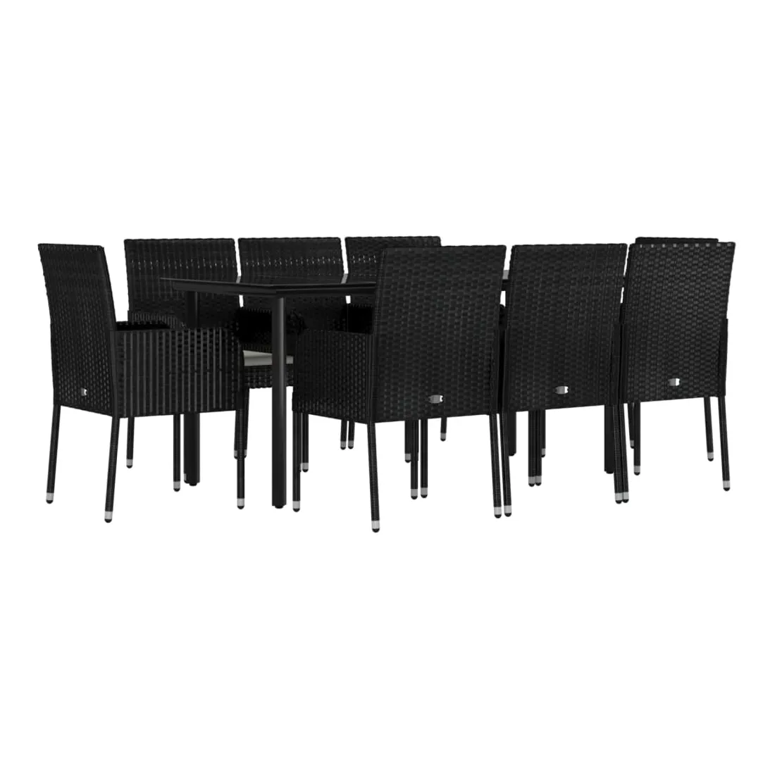 Cet ensemble de salle à manger de jardin tendance, au design élégant et contemporain, est un excellent choix pour manger ou vous détendre dans votre jardin. Matériau résistant aux intempéries : la résine tressée, également connue sous le nom de rotin poly, résiste aux intempéries et est facile à nettoyer. Elle reste belle à l'extérieur pendant une longue période. Elle offre une excellente qualité, commodité et un aspect esthétique.Cadre robuste : les cadres en acier enduit de poudre rendent l'ensemble de salle à manger d'extérieur robuste et stable pour une utilisation quotidienne à l'extérieur.Dessus de table pratique : le dessus lisse de la table de jardin est en verre trempé, facile à nettoyer avec un chiffon humide. De plus, le dessus robuste est parfait pour placer des repas, des boissons et d'autres objets décoratifs.Conception modulaire : l'ensemble de salle à manger de jardin est flexible et facile à déplacer, vous pouvez donc le combiner avec d'autres segments modulaires dans la boutique en ligne pour créer vos propres configurations d'ensemble de salle à manger de jardin !Expérience d'assise confortable : le dossier ajoute un confort d'assise supplémentaire à la chaise de jardin. De plus, les coussins bien rembourrés vous permettent de vous asseoir confortablement. Bon à savoir :Pour faciliter au maximum le montage, chaque produit est livré avec des instructions. Remarque :Pour que vos meubles d'extérieur restent beaux, nous vous recommandons de les protéger avec une housse imperméable.