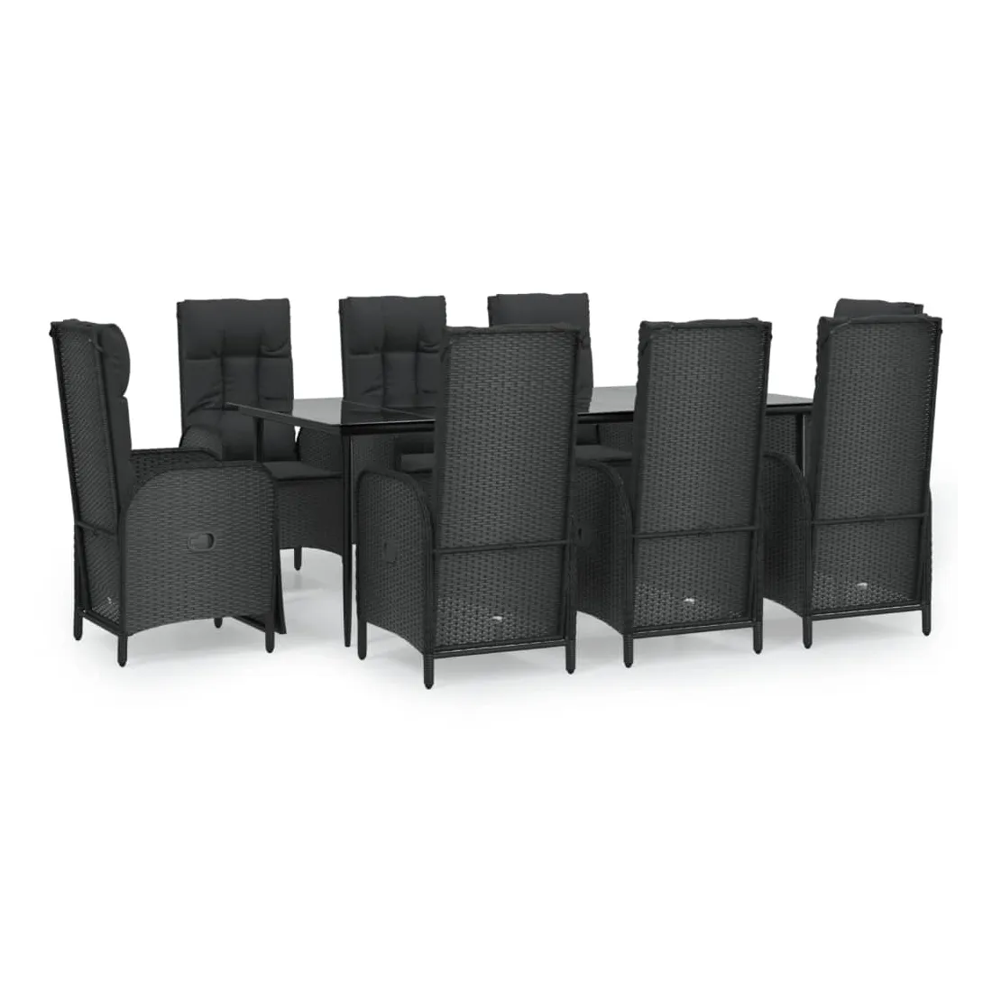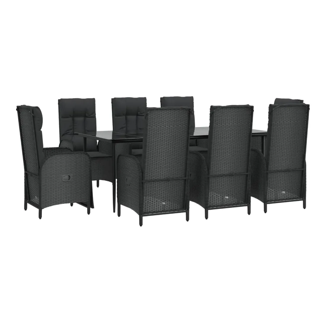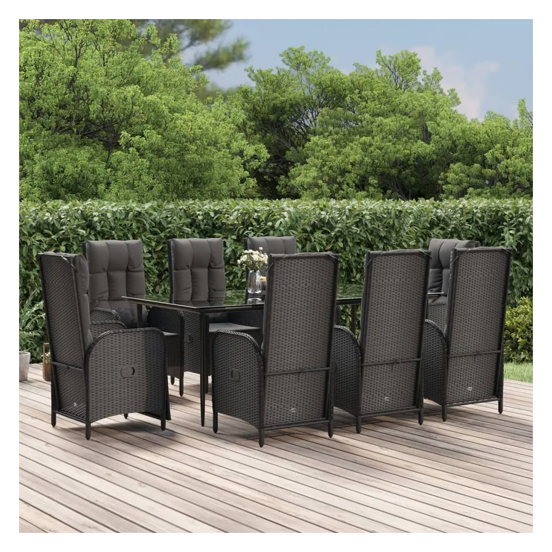 Cet ensemble de salle à manger de jardin tendance, au design élégant et contemporain, est un excellent choix pour manger ou vous détendre dans votre jardin. Matériau résistant aux intempéries : la résine tressée, également connue sous le nom de rotin poly, résiste aux intempéries et est facile à nettoyer. Elle reste belle à l'extérieur pendant une longue période. Elle offre une excellente qualité, commodité et un aspect esthétique.Cadre robuste : les cadres en acier enduit de poudre rendent l'ensemble de salle à manger d'extérieur robuste et stable pour une utilisation quotidienne à l'extérieur.Dessus de table pratique : le dessus lisse de la table de jardin est en verre trempé, facile à nettoyer avec un chiffon humide. De plus, le dessus robuste est parfait pour placer des repas, des boissons et d'autres objets décoratifs.Fonction d'inclinaison : les chaises de jardin sont spécialement conçues avec une fonction d'inclinaison afin que vous puissiez régler le dossier selon votre confort.Expérience d'assise confortable : le dossier ajoute un confort d'assise supplémentaire à la chaise de jardin. De plus, les coussins bien rembourrés vous permettent de vous asseoir confortablement. Bon à savoir :Pour faciliter au maximum le montage, chaque produit est livré avec des instructions. Remarque :Pour que vos meubles d'extérieur restent beaux, nous vous recommandons de les protéger avec une housse imperméable.