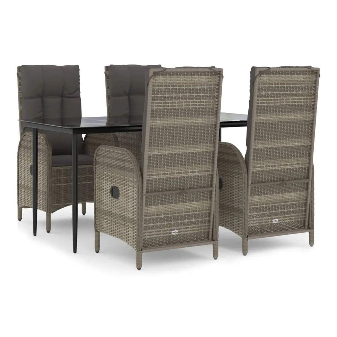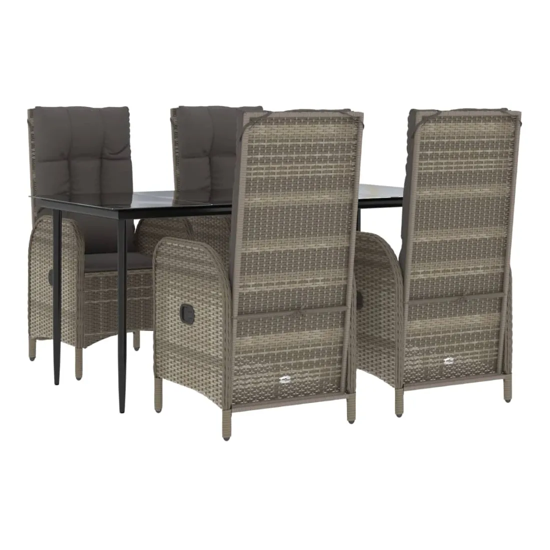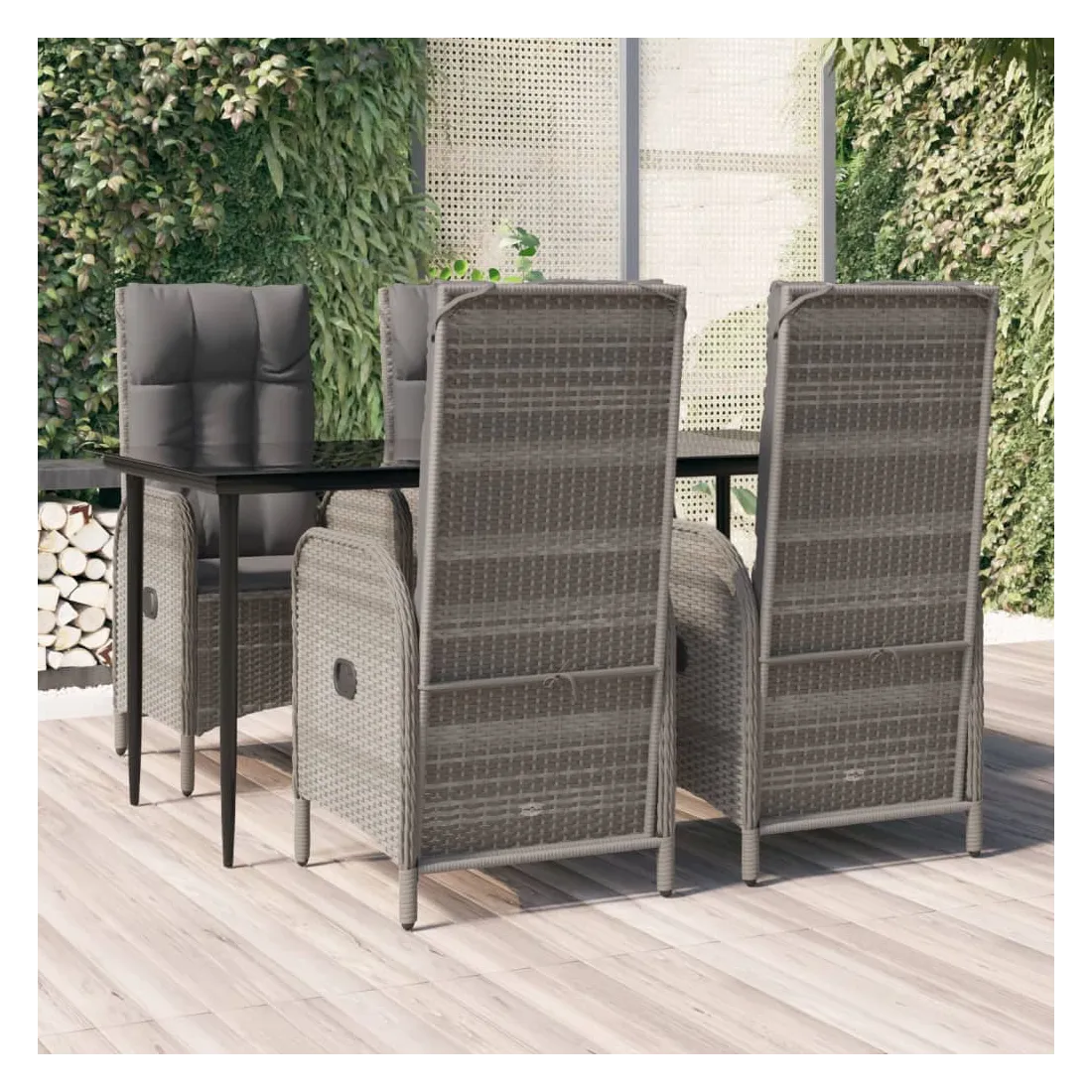 Cet ensemble de salle à manger de jardin tendance, au design élégant et contemporain, est un excellent choix pour manger ou vous détendre dans votre jardin. Matériau résistant aux intempéries : la résine tressée, également connue sous le nom de rotin poly, résiste aux intempéries et est facile à nettoyer. Elle reste belle à l'extérieur pendant une longue période. Elle offre une excellente qualité, commodité et un aspect esthétique.Cadre robuste : les cadres en acier enduit de poudre rendent l'ensemble de salle à manger d'extérieur robuste et stable pour une utilisation quotidienne à l'extérieur.Dessus de table pratique : le dessus lisse de la table de jardin est en verre trempé, facile à nettoyer avec un chiffon humide. De plus, le dessus robuste est parfait pour placer des repas, des boissons et d'autres objets décoratifs.Fonction d'inclinaison : les chaises de jardin sont spécialement conçues avec une fonction d'inclinaison afin que vous puissiez régler le dossier selon votre confort.Expérience d'assise confortable : le dossier ajoute un confort d'assise supplémentaire à la chaise de jardin. De plus, les coussins bien rembourrés vous permettent de vous asseoir confortablement. Bon à savoir :Pour faciliter au maximum le montage, chaque produit est livré avec des instructions. Remarque :Pour que vos meubles d'extérieur restent beaux, nous vous recommandons de les protéger avec une housse imperméable.