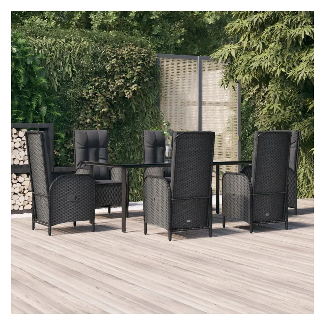 Cet ensemble de salle à manger de jardin tendance, au design élégant et contemporain, est un excellent choix pour manger ou vous détendre dans votre jardin. Matériau résistant aux intempéries : la résine tressée, également connue sous le nom de rotin poly, résiste aux intempéries et est facile à nettoyer. Elle reste belle à l'extérieur pendant une longue période. Elle offre une excellente qualité, commodité et un aspect esthétique.Cadre robuste : les cadres en acier enduit de poudre rendent l'ensemble de salle à manger d'extérieur robuste et stable pour une utilisation quotidienne à l'extérieur.Dessus de table pratique : le dessus lisse de la table de jardin est en verre trempé, facile à nettoyer avec un chiffon humide. De plus, le dessus robuste est parfait pour placer des repas, des boissons et d'autres objets décoratifs.Fonction d'inclinaison : les chaises de jardin sont spécialement conçues avec une fonction d'inclinaison afin que vous puissiez régler le dossier selon votre confort.Expérience d'assise confortable : le dossier ajoute un confort d'assise supplémentaire à la chaise de jardin. De plus, les coussins bien rembourrés vous permettent de vous asseoir confortablement. Bon à savoir :Pour faciliter au maximum le montage, chaque produit est livré avec des instructions. Remarque :Pour que vos meubles d'extérieur restent beaux, nous vous recommandons de les protéger avec une housse imperméable.