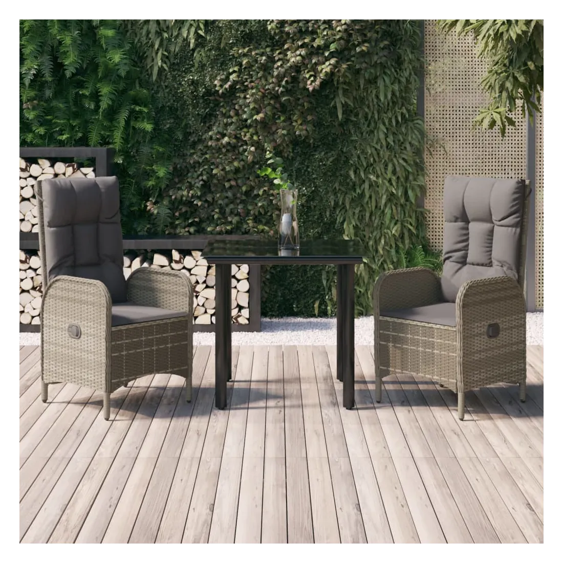 vidaXLCet ensemble de salle à manger de jardin tendance, au design élégant et contemporain, est un excellent choix pour manger ou vous détendre dans votre jardin. Matériau résistant aux intempéries : la résine tressée, également connue sous le nom de rotin poly, résiste aux intempéries et est facile à nettoyer. Elle reste belle à l'extérieur pendant une longue période. Elle offre une excellente qualité, commodité et un aspect esthétique.Cadre robuste : les cadres en acier enduit de poudre rendent l'ensemble de salle à manger d'extérieur robuste et stable pour une utilisation quotidienne à l'extérieur.Dessus de table pratique : le dessus lisse de la table de jardin est en verre trempé, facile à nettoyer avec un chiffon humide. De plus, le dessus robuste est parfait pour placer des repas, des boissons et d'autres objets décoratifs.Fonction d'inclinaison : les chaises de jardin sont spécialement conçues avec une fonction d'inclinaison afin que vous puissiez régler le dossier selon votre confort.Expérience d'assise confortable : le dossier ajoute un confort d'assise supplémentaire à la chaise de jardin. De plus, les coussins bien rembourrés vous permettent de vous asseoir confortablement. Bon à savoir :Pour faciliter au maximum le montage, chaque produit est livré avec des instructions. Remarque :Pour que vos meubles d'extérieur restent beaux, nous vous recommandons de les protéger avec une housse imperméable.
