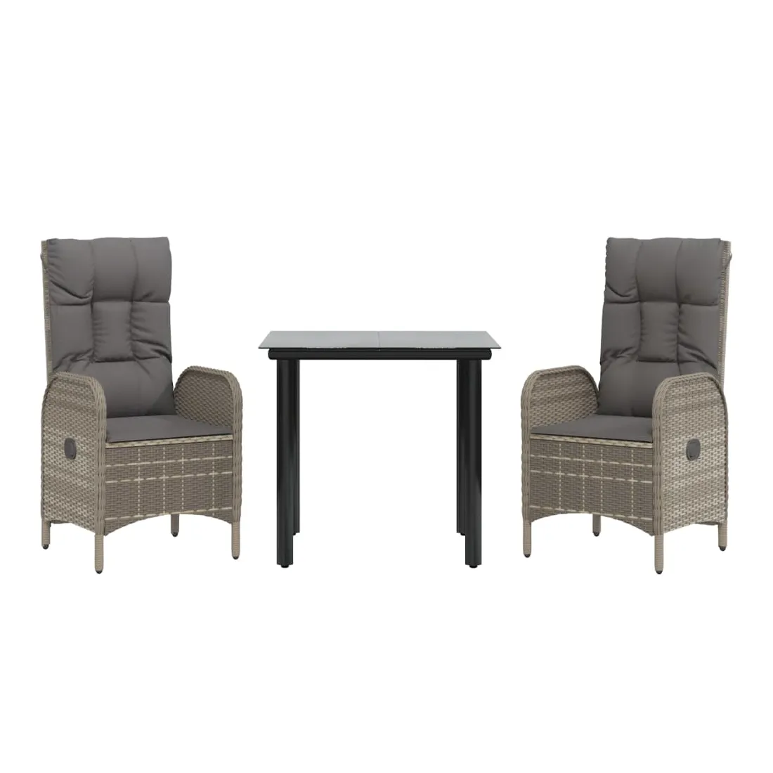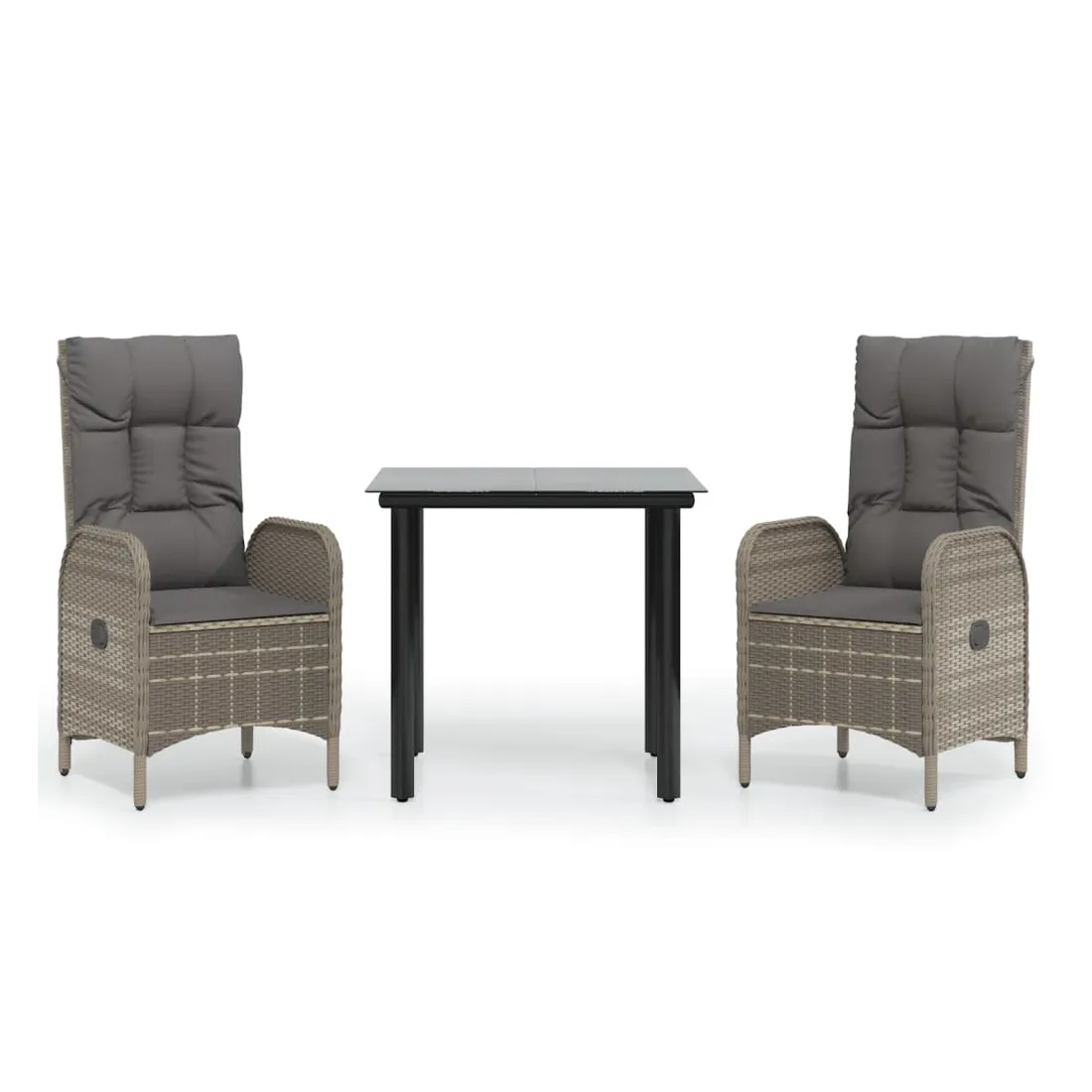 Ensemble à manger jardin 3pcs avec coussins noir et gris