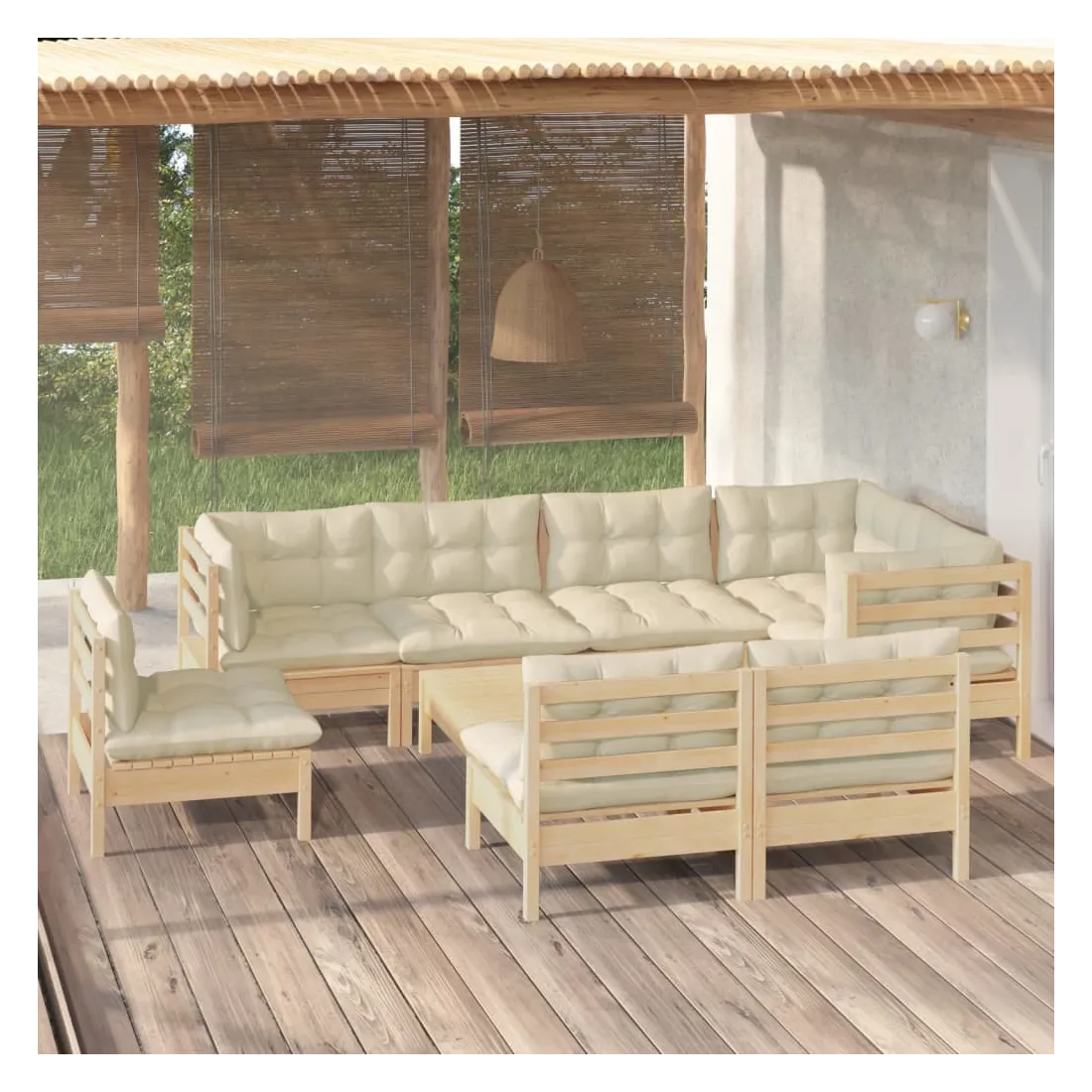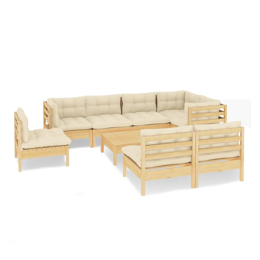 Ce salon de jardin est un excellent choix pour vous détendre et profiter du beau temps, faire une sieste ou discuter avec votre famille ou vos amis. Le salon de patio est fabriqué en bois de pin massif, ce qui le rend robuste et stable. Les coussins ajoutent un confort supplémentaire. Vous pouvez le combiner avec d’autres segments modulaires pour créer vos propres configurations de salon de jardin ! Remarque : afin de prolonger la durée de vie des meubles d'extérieur, nous vous recommandons de les protéger avec une housse imperméable.