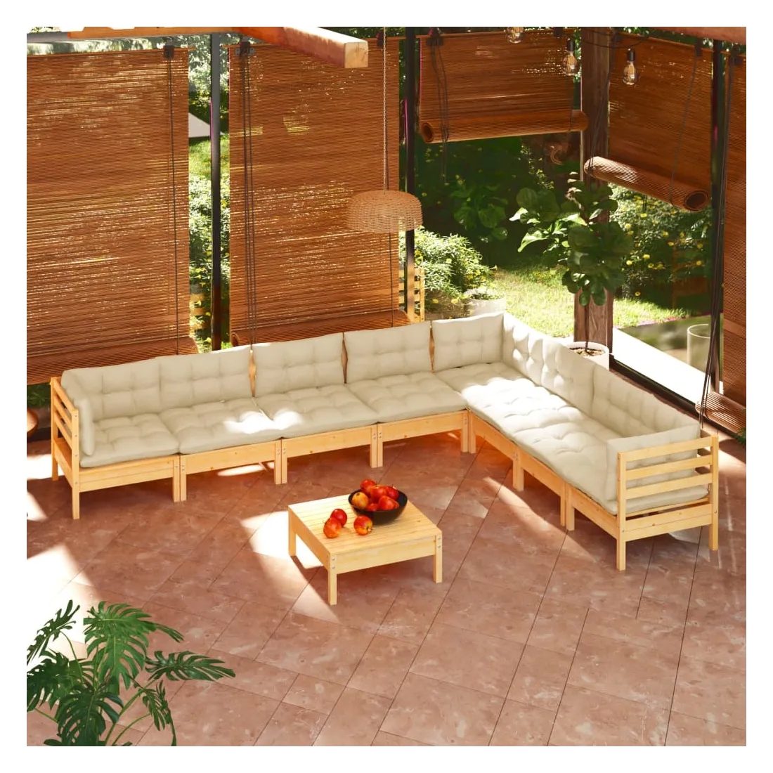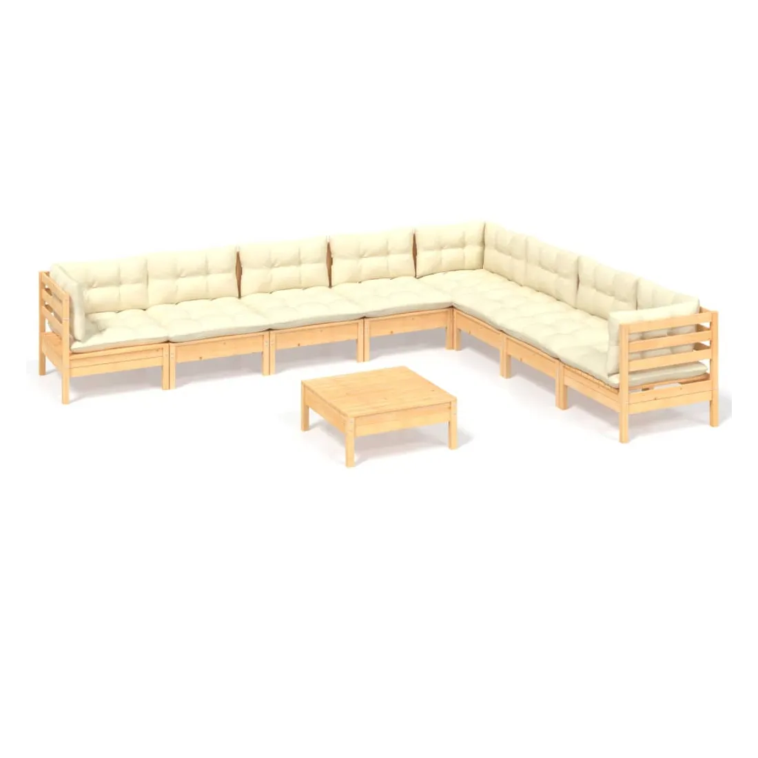Ce salon de jardin est un excellent choix pour vous détendre et profiter du beau temps, faire une sieste ou discuter avec votre famille ou vos amis. Le salon de patio est fabriqué en bois de pin massif, ce qui le rend robuste et stable. Les coussins ajoutent un confort supplémentaire. Vous pouvez le combiner avec d’autres segments modulaires pour créer vos propres configurations de salon de jardin ! Remarque : afin de prolonger la durée de vie des meubles d'extérieur, nous vous recommandons de les protéger avec une housse imperméable.