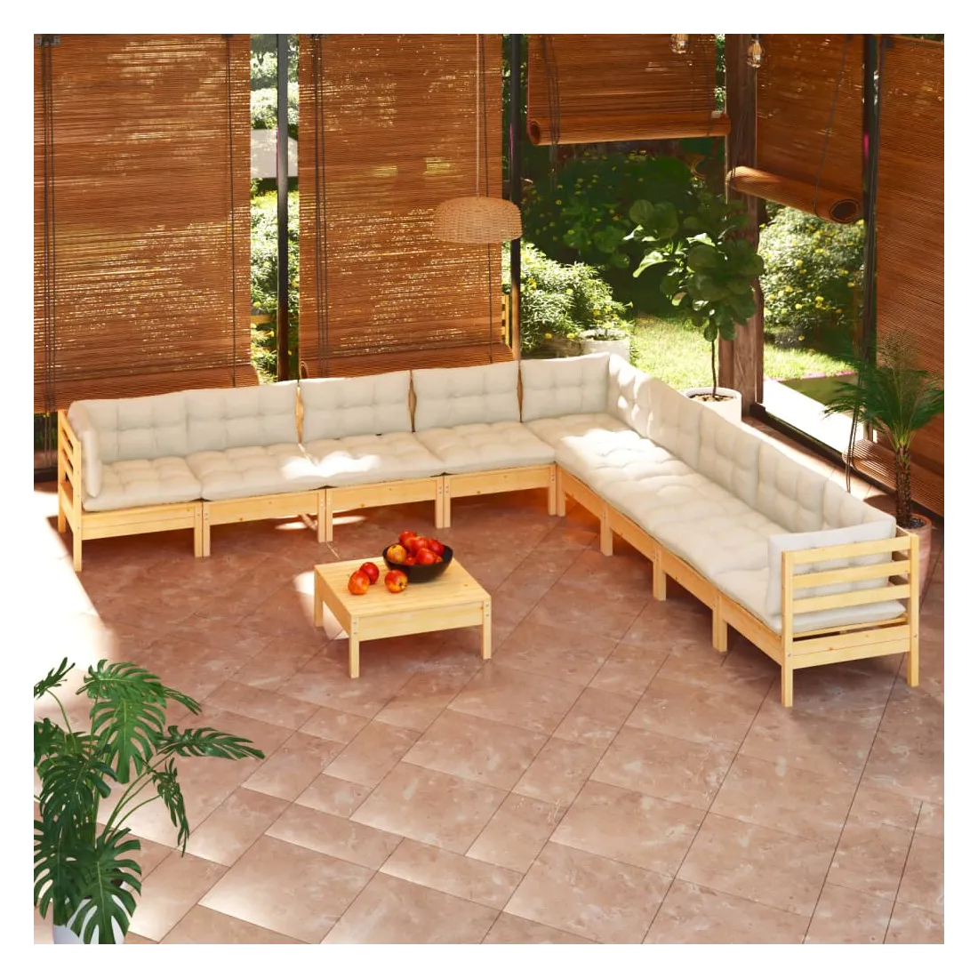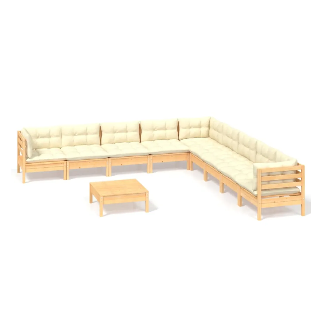Ce salon de jardin est un excellent choix pour vous détendre et profiter du beau temps, faire une sieste ou discuter avec votre famille ou vos amis. Le salon de patio est fabriqué en bois de pin massif, ce qui le rend robuste et stable. Les coussins ajoutent un confort supplémentaire. Vous pouvez le combiner avec d’autres segments modulaires pour créer vos propres configurations de salon de jardin ! Remarque : afin de prolonger la durée de vie des meubles d'extérieur, nous vous recommandons de les protéger avec une housse imperméable.
