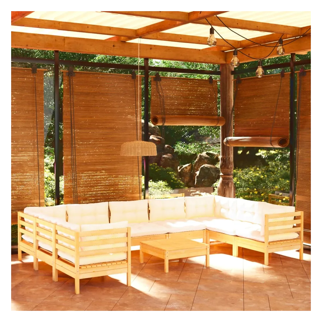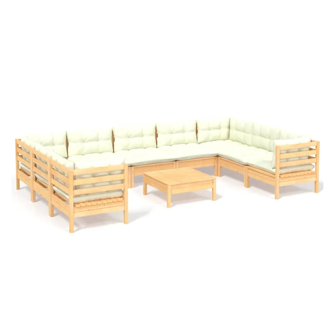 Cet ensemble de salon de jardin en bois est un choix excellent pour vous détendre et profiter du bon temps, faire une sieste ou discuter avec votre famille ou vos amis. Le salon de patio est fabriqué en bois de pin massif, ce qui le rend robuste et stable. Les coussins ajoutent un confort supplémentaire. Vous pouvez le combiner avec d’autres segments modulaires pour créer vos propres configurations de salon de jardin ! Remarque : afin de prolonger la durée de vie des meubles d'extérieur, nous vous recommandons de les protéger avec une housse imperméable.