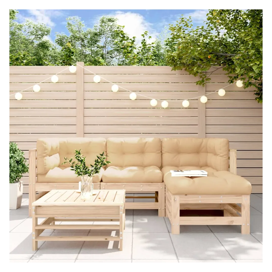 Ce salon de jardin en bois, qui se démarque par son design à lattes et ses coussins moelleux, sera un excellent supplément à votre jardin, patio ou terrasse pour profiter d'un moment agréable avec votre famille ou vos amis. Bois de pin massif : le bois de pin massif est un matériau naturel magnifique. Le bois de pin a un grain droit et les nœuds donnent au matériau son aspect caractéristique et rustique.Cadre robuste et stable : le cadre en bois rend l'ensemble de salon robuste et stable pour une utilisation quotidienne à l'extérieur.Expérience d'assise confortable : le dossier et l'accoudoir ajoutent un confort d'assise supplémentaire à l'ensemble de meubles de jardin. De plus, les coussins bien rembourrés vous permettent de vous asseoir confortablement.Design modulaire : le canapé est flexible et facile à déplacer. Vous pouvez le combiner avec d'autres segments modulaires de la boutique en ligne pour créer vos propres configurations de salon de jardin ! Bon à savoir :Pour que vos meubles d'extérieur restent beaux, nous vous recommandons de les protéger avec une housse imperméable.