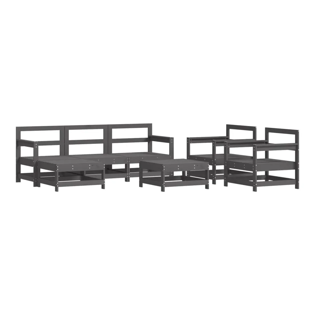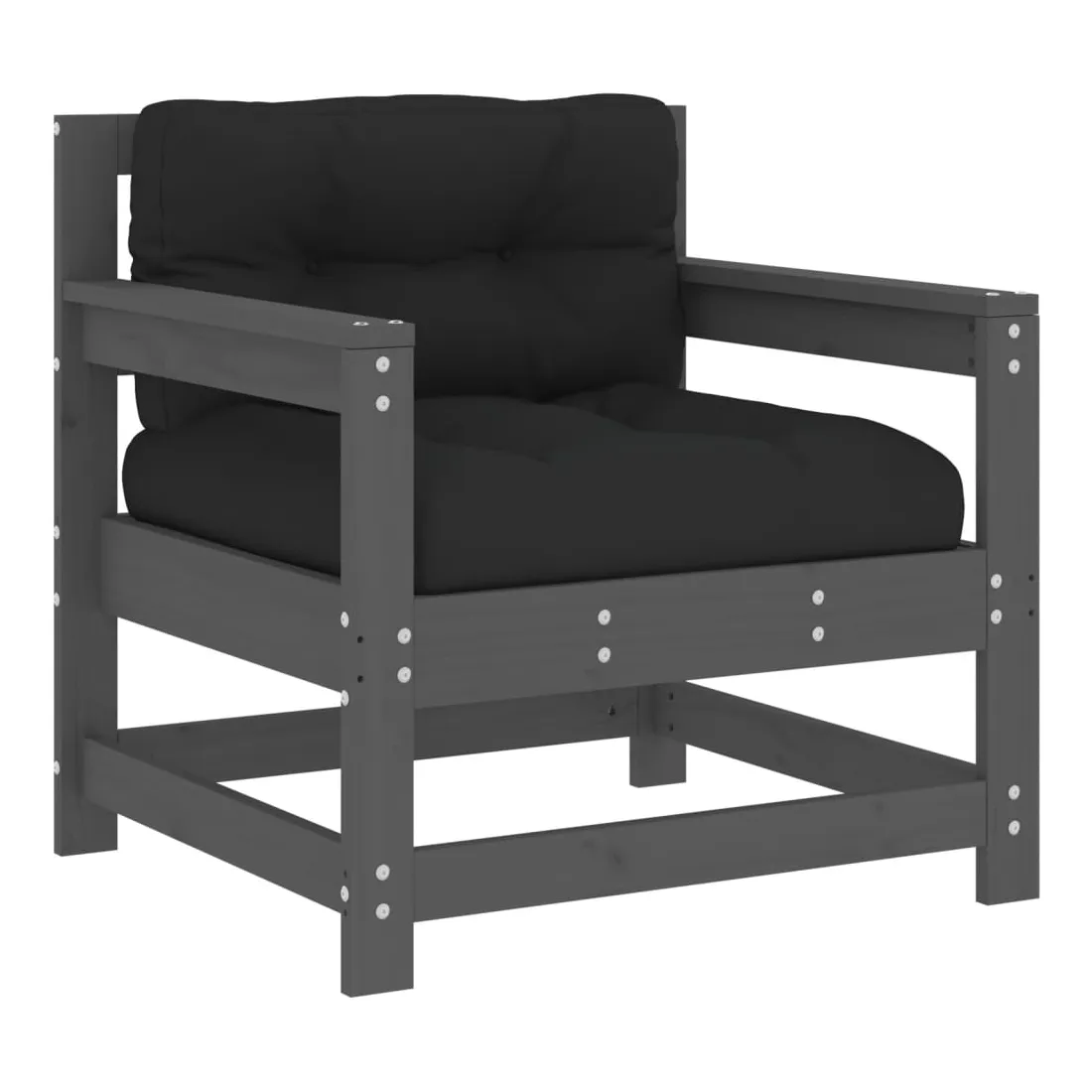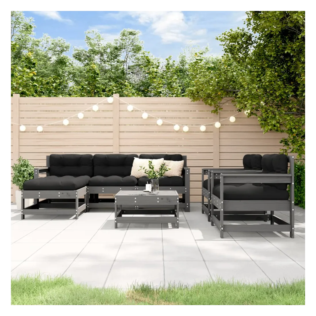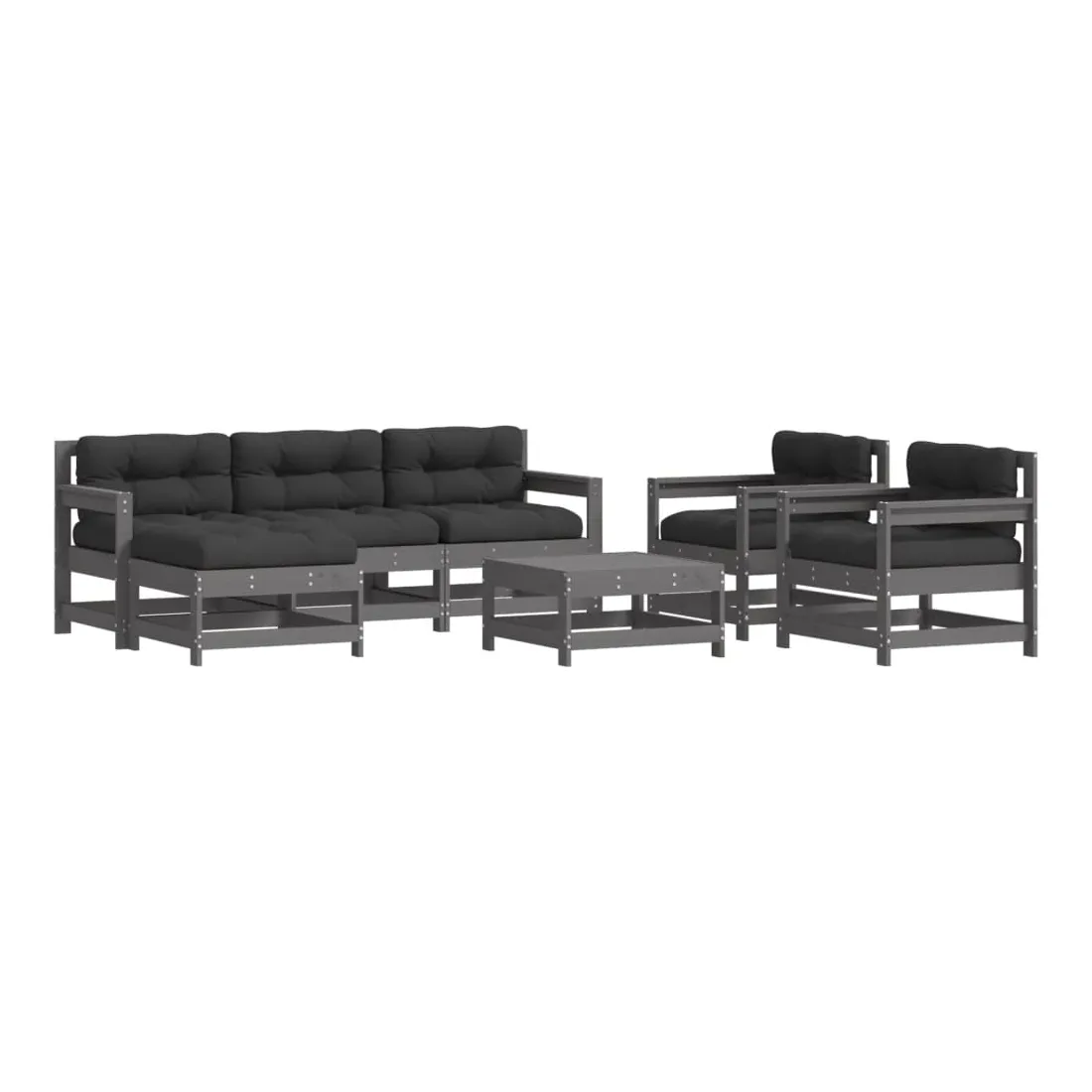 Salon de jardin 7 pcs avec coussins gris bois massif