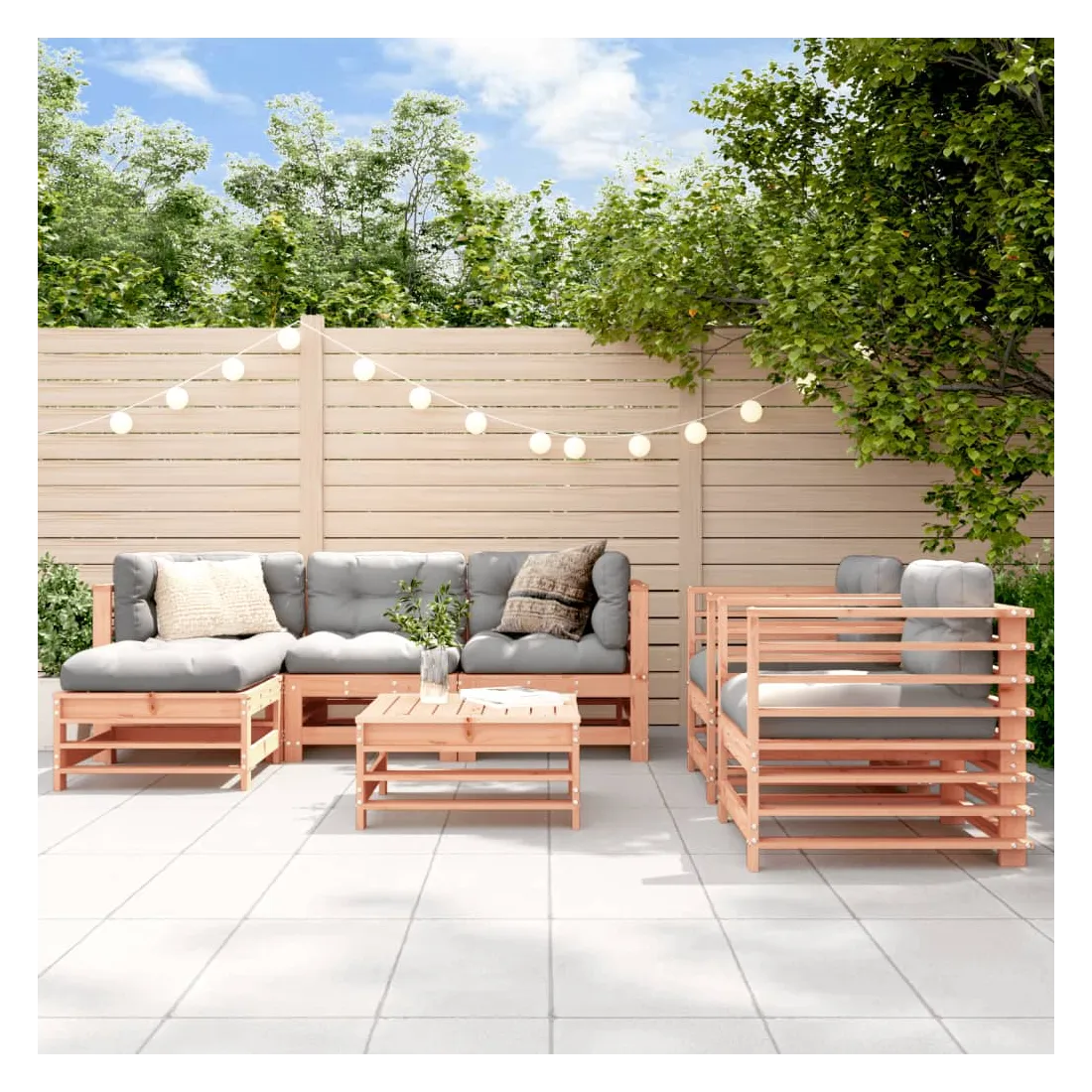 Salon de jardin 7 pcs avec coussins bois massif douglas