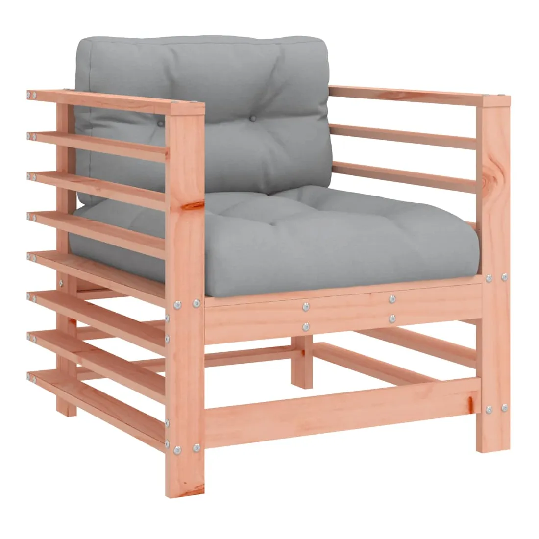 vidaXLCe salon de jardin en bois, qui se démarque par son design à lattes et ses coussins moelleux, sera un excellent supplément à votre jardin, patio ou terrasse pour profiter d'un moment agréable avec votre famille ou vos amis. Bois de douglas massif : le bois de douglas massif est un bois très durable qui fonctionne bien pour l'extérieur. Le bois de douglas est également suffisamment solide pour être travaillé avec un minimum de soin, même sous l'influence des intempéries.Cadre robuste et stable : le cadre en bois rend l'ensemble de salon robuste et stable pour une utilisation quotidienne à l'extérieur.Expérience d'assise confortable : le dossier et l'accoudoir ajoutent un confort d'assise supplémentaire à l'ensemble de meubles de jardin. De plus, les coussins bien rembourrés vous permettent de vous asseoir confortablement.Design modulaire : le canapé est flexible et facile à déplacer. Vous pouvez le combiner avec d'autres segments modulaires de la boutique en ligne pour créer vos propres configurations de salon de jardin ! Bon à savoir :Pour que vos meubles d'extérieur restent beaux, nous vous recommandons de les protéger avec une housse imperméable.