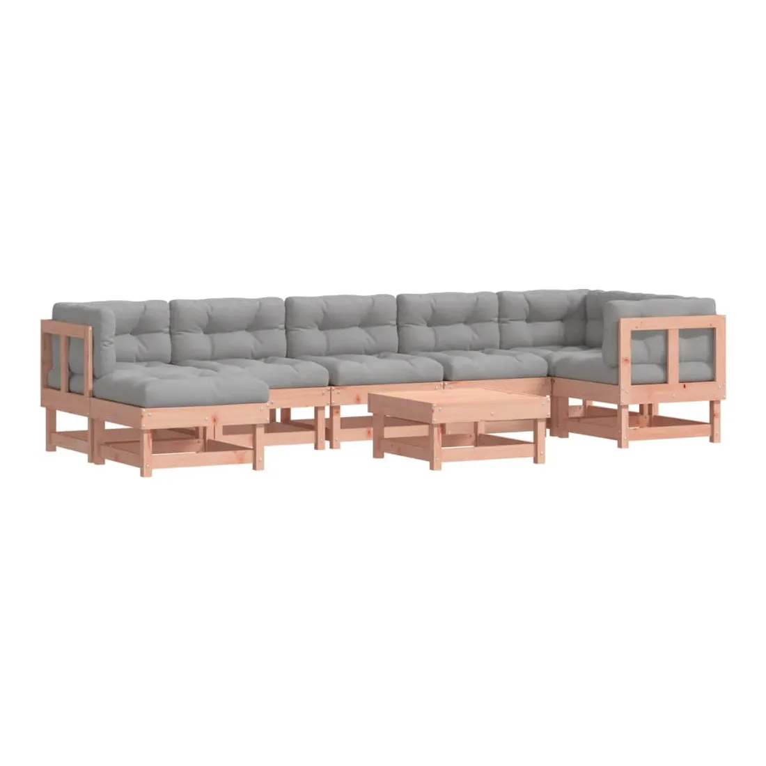 Ce salon de jardin en bois, qui se démarque par son design à lattes et ses coussins moelleux, sera un excellent supplément à votre jardin, patio ou terrasse pour profiter d'un moment agréable avec votre famille ou vos amis. Bois de douglas massif : le bois de douglas massif est un bois très durable qui fonctionne bien pour l'extérieur. Le bois de douglas est également suffisamment solide pour être travaillé avec un minimum de soin, même sous l'influence des intempéries.Cadre robuste et stable : le cadre en bois rend l'ensemble de salon robuste et stable pour une utilisation quotidienne à l'extérieur.Expérience d'assise confortable : le dossier et l'accoudoir ajoutent un confort d'assise supplémentaire à l'ensemble de meubles de jardin. De plus, les coussins bien rembourrés vous permettent de vous asseoir confortablement.Design modulaire : le canapé est flexible et facile à déplacer. Vous pouvez le combiner avec d'autres segments modulaires de la boutique en ligne pour créer vos propres configurations de salon de jardin ! Bon à savoir :Pour que vos meubles d'extérieur restent beaux, nous vous recommandons de les protéger avec une housse imperméable.