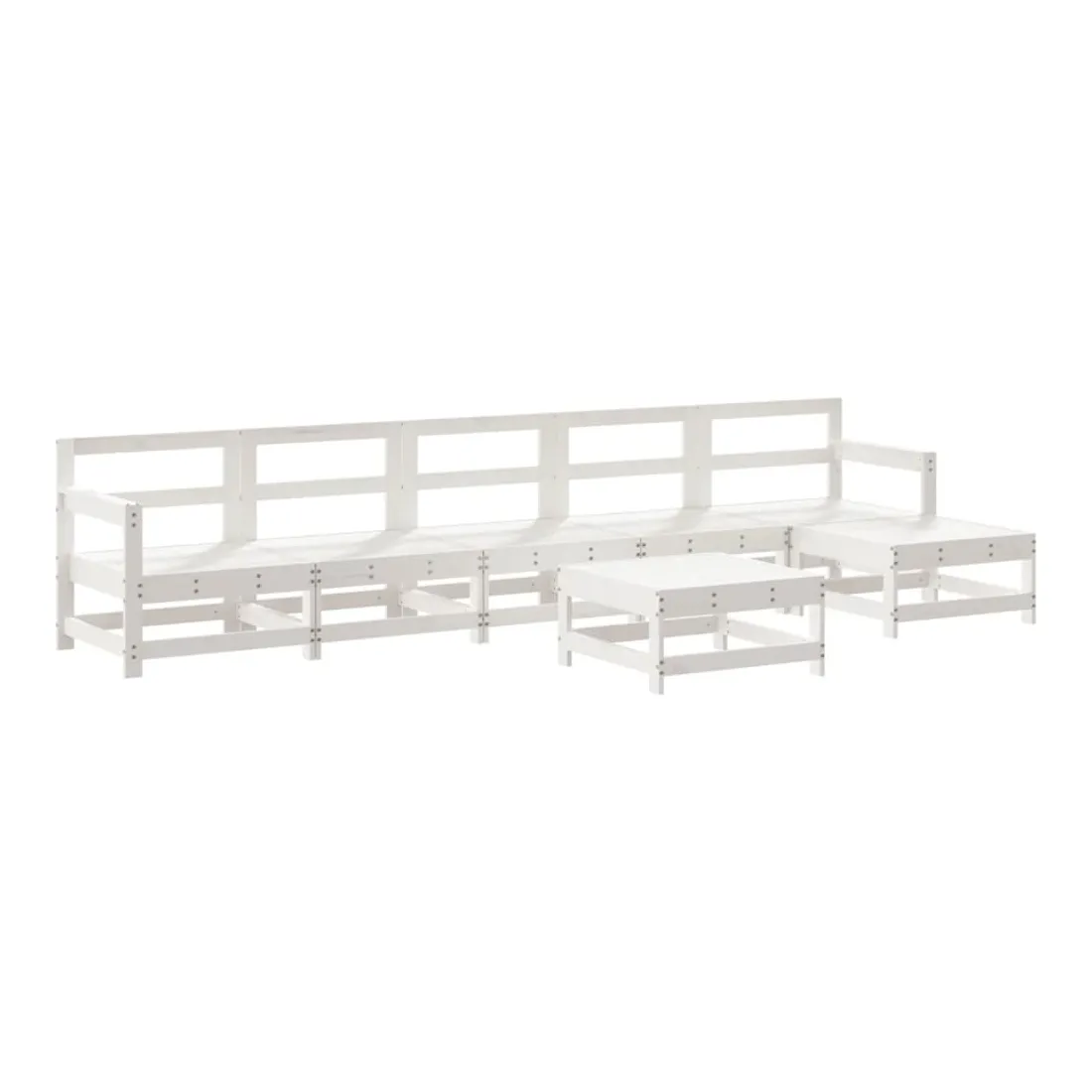 Salon de jardin 7 pcs avec coussins blanc bois massif