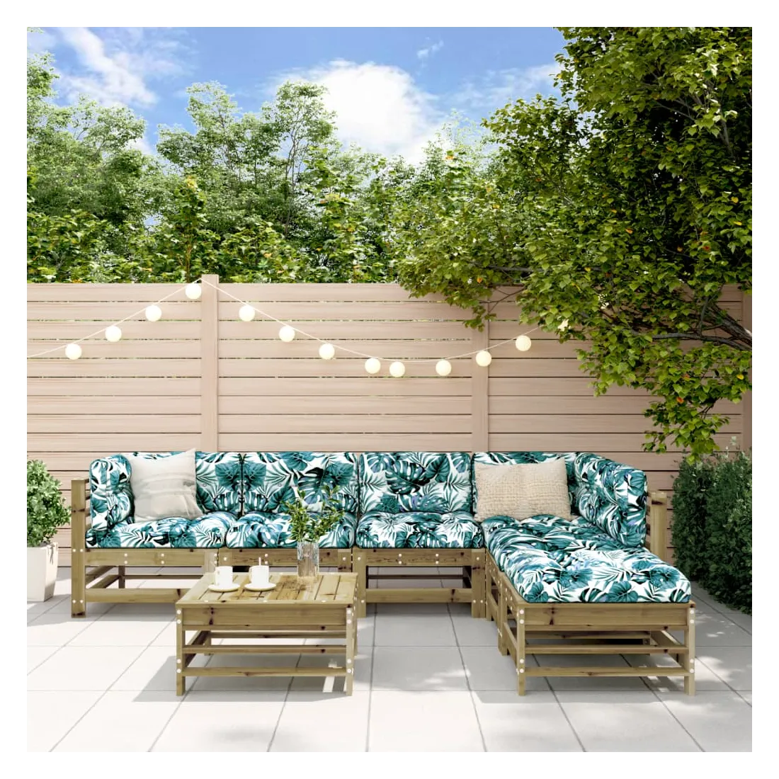Ce salon de jardin en bois, qui se démarque par son design à lattes et ses coussins moelleux, sera un excellent supplément à votre jardin, patio ou terrasse pour profiter d'un moment agréable avec votre famille ou vos amis. Bois imprégné : le bois de pin massif est un matériau naturel magnifique. Le bois de pin a un grain droit et les nœuds lui confèrent un aspect rustique caractéristique. L'imprégnation est un processus de conservation réalisé à l'aide d'autoclaves. Le traitement sous pression augmente la résistance à la pourriture et aux intempéries.Expérience d'assise confortable : le dossier et l'accoudoir ajoutent un confort d'assise supplémentaire à l'ensemble de meubles de jardin. De plus, les coussins bien rembourrés vous permettent de vous asseoir confortablement.Design modulaire : le canapé est flexible et facile à déplacer. Vous pouvez le combiner avec d'autres segments modulaires de la boutique en ligne pour créer vos propres configurations de salon de jardin ! Bon à savoir :Pour que vos meubles d'extérieur restent beaux, nous vous recommandons de les protéger avec une housse imperméable.