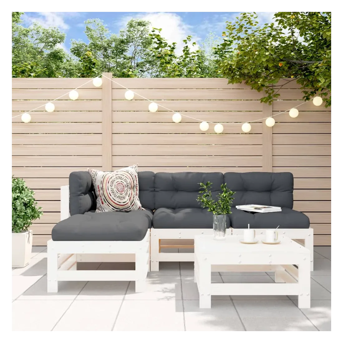 Ce salon de jardin en bois, qui se démarque par son design à lattes et ses coussins moelleux, sera un excellent supplément à votre jardin, patio ou terrasse pour profiter d'un moment agréable avec votre famille ou vos amis. Bois de pin massif : le bois de pin massif est un matériau naturel magnifique. Le bois de pin a un grain droit et les nœuds donnent au matériau son aspect caractéristique et rustique.Cadre robuste et stable : le cadre en bois rend l'ensemble de salon robuste et stable pour une utilisation quotidienne à l'extérieur.Expérience d'assise confortable : le dossier et l'accoudoir ajoutent un confort d'assise supplémentaire à l'ensemble de meubles de jardin. De plus, les coussins bien rembourrés vous permettent de vous asseoir confortablement.Design modulaire : le canapé est flexible et facile à déplacer. Vous pouvez le combiner avec d'autres segments modulaires de la boutique en ligne pour créer vos propres configurations de salon de jardin ! Bon à savoir :Pour que vos meubles d'extérieur restent beaux, nous vous recommandons de les protéger avec une housse imperméable.