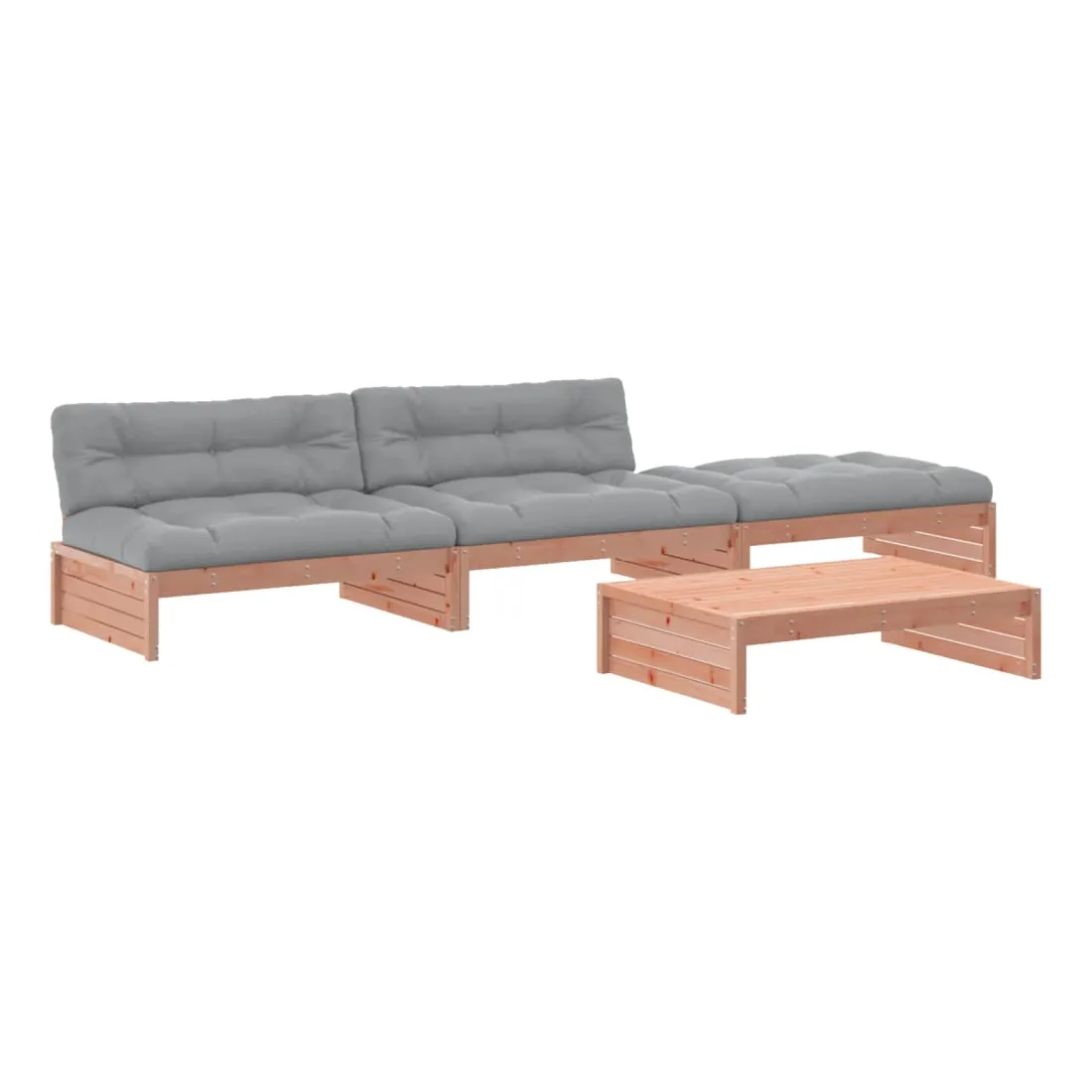 Ce salon de jardin en bois, qui se démarque par son design à lattes et ses coussins moelleux, sera un excellent supplément à votre jardin, patio ou terrasse pour profiter d'un moment agréable avec votre famille ou vos amis. Bois de douglas massif : le bois de douglas massif est un bois très durable qui fonctionne bien à l'extérieur. Le bois de douglas est également suffisamment solide pour être travaillé avec un minimum de soin, même sous l'influence des intempéries.Cadre robuste et stable : les cadres en bois rendent l'ensemble de salon robuste et stable pour une utilisation quotidienne à l'extérieur.Expérience d'assise confortable : le dossier ajoute un confort d'assise supplémentaire à l'ensemble de meubles de jardin. De plus, le coussin bien rembourré vous permet de vous asseoir confortablement.Design modulaire : le canapé est flexible et facile à déplacer. Vous pouvez le combiner avec d'autres segments modulaires de la boutique en ligne pour créer vos propres configurations de salon de jardin ! Bon à savoir :Pour que vos meubles d'extérieur restent beaux, nous vous recommandons de les protéger avec une housse imperméable.