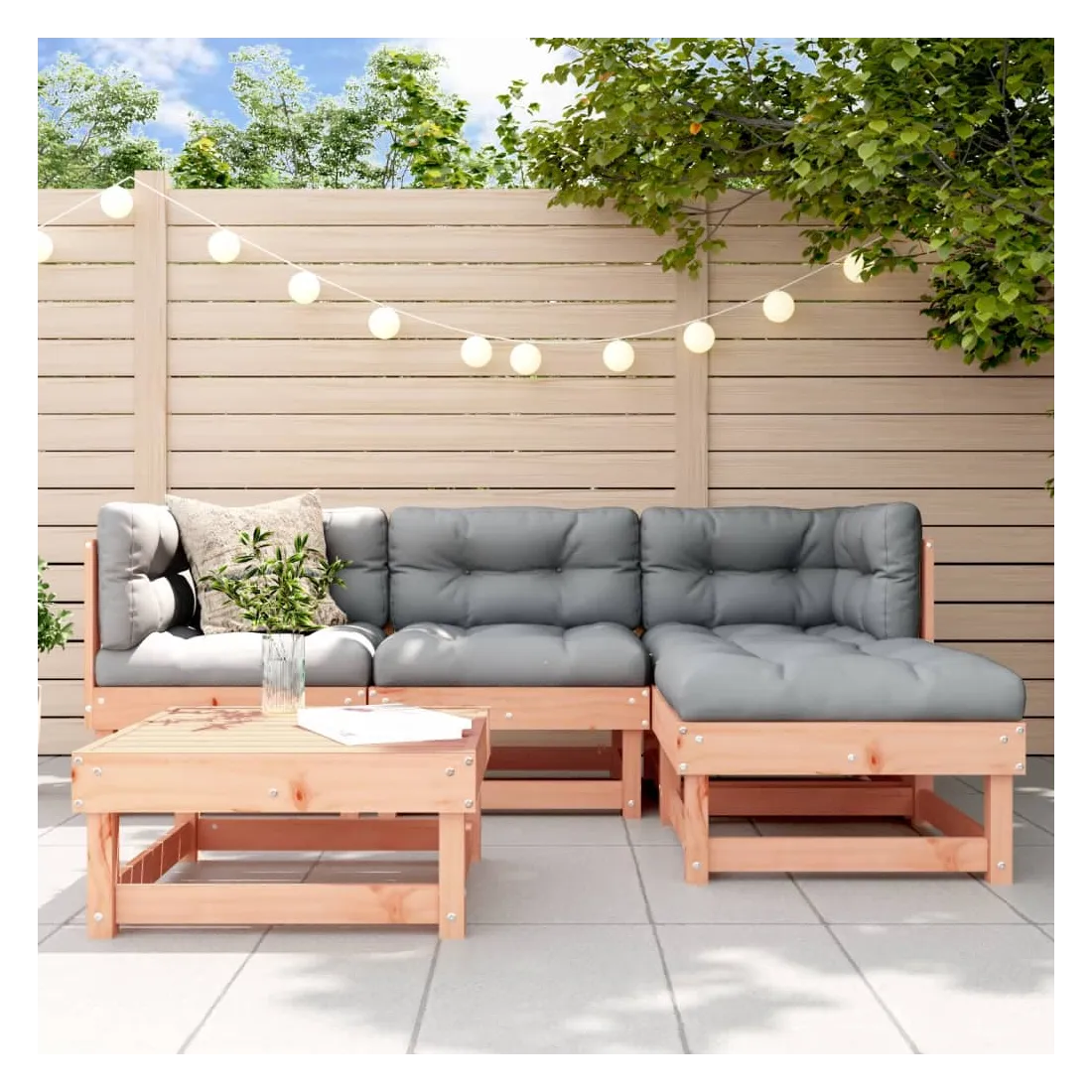 Ce salon de jardin en bois, qui se démarque par son design à lattes, sera un excellent supplément à votre jardin, patio ou terrasse pour profiter d'un moment agréable avec votre famille ou vos amis. Bois de douglas massif : le bois de douglas massif est un bois très durable qui fonctionne bien à l'extérieur. Le bois de douglas est également suffisamment solide pour être travaillé avec un minimum de soin, même sous l'influence des intempéries.Cadre robuste et stable : les cadres en bois rendent l'ensemble de salon robuste et stable pour une utilisation quotidienne à l'extérieur.Design modulaire : le canapé est flexible et facile à déplacer. Vous pouvez le combiner avec d'autres segments modulaires de la boutique en ligne pour créer vos propres configurations de salon de jardin ! Bon à savoir :Pour que vos meubles d'extérieur restent beaux, nous vous recommandons de les protéger avec une housse imperméable.Les coussins ne sont pas inclus dans la livraison.