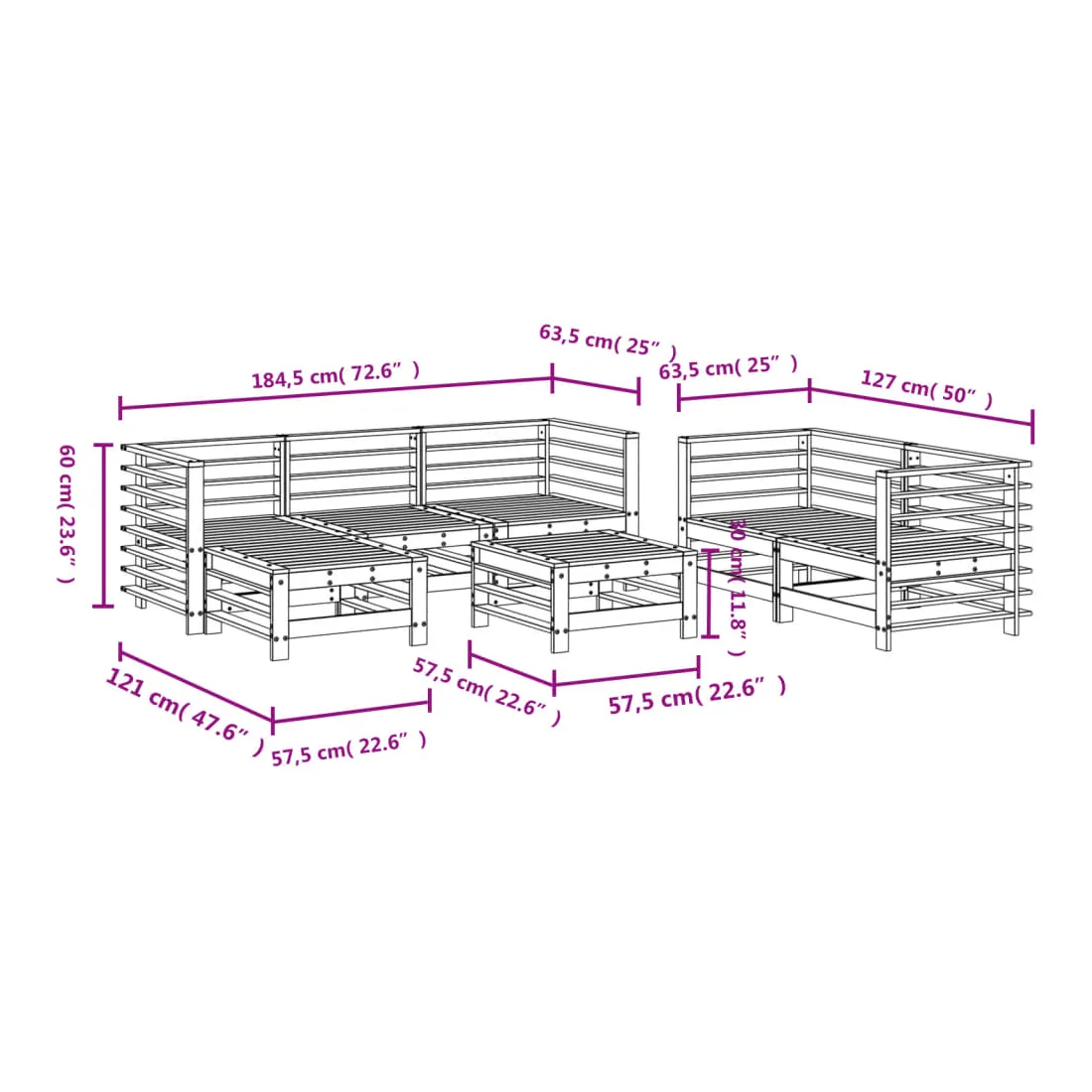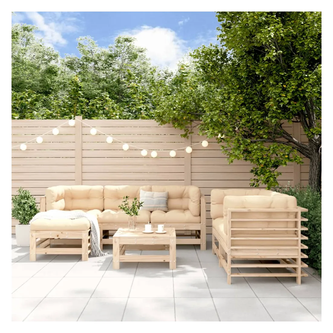 Ce salon de jardin en bois, qui se démarque par son design à lattes, sera un excellent supplément à votre jardin, patio ou terrasse pour profiter d'un moment agréable avec votre famille ou vos amis. Bois de pin massif : le bois de pin massif est un matériau naturel magnifique. Le bois de pin a un grain droit et les nœuds donnent au matériau son aspect caractéristique et rustique.Cadre robuste et stable : les cadres en bois rendent l'ensemble de salon robuste et stable pour une utilisation quotidienne à l'extérieur.Design modulaire : le canapé est flexible et facile à déplacer. Vous pouvez le combiner avec d'autres segments modulaires de la boutique en ligne pour créer vos propres configurations de salon de jardin ! Bon à savoir :Pour que vos meubles d'extérieur restent beaux, nous vous recommandons de les protéger avec une housse imperméable.Les coussins ne sont pas inclus dans la livraison.