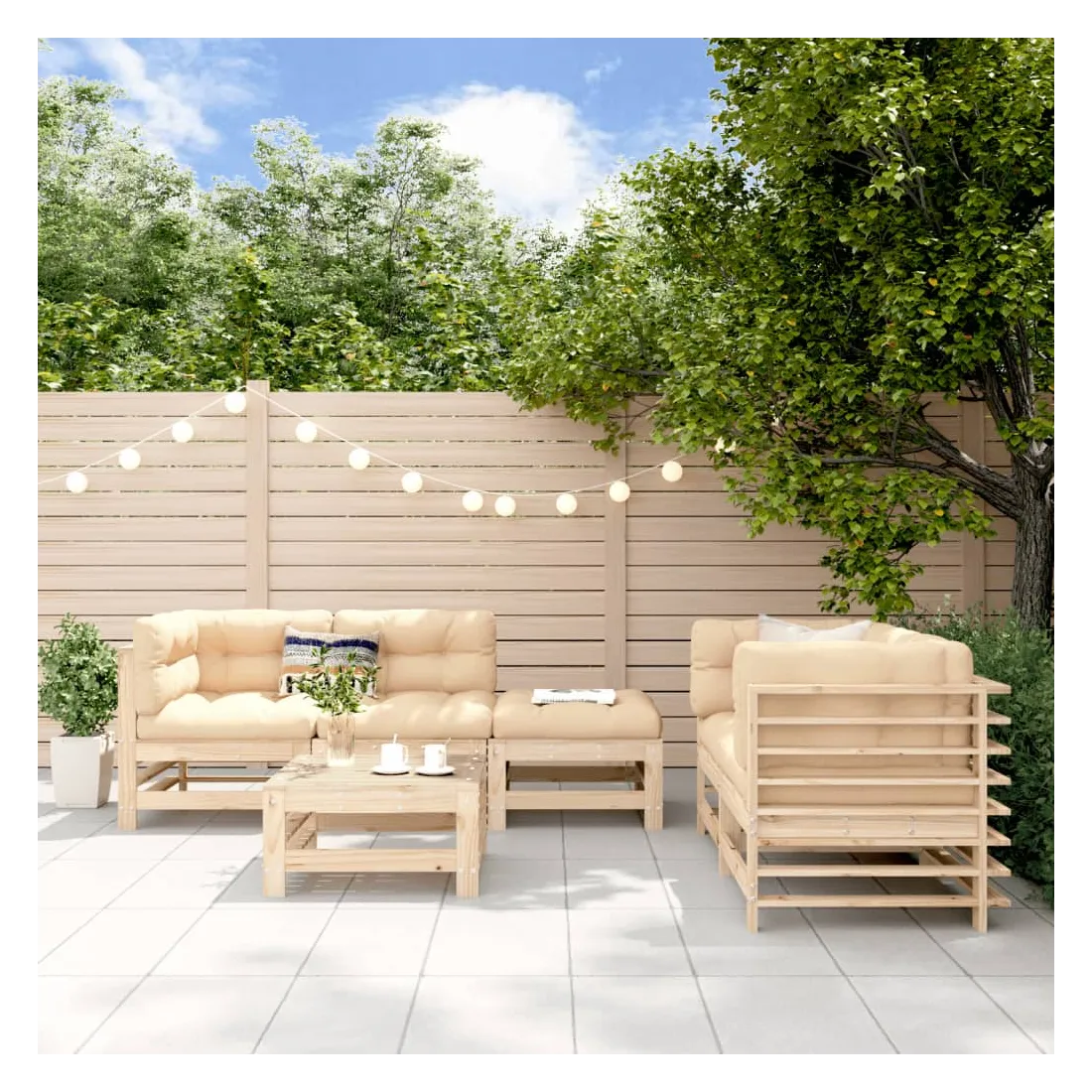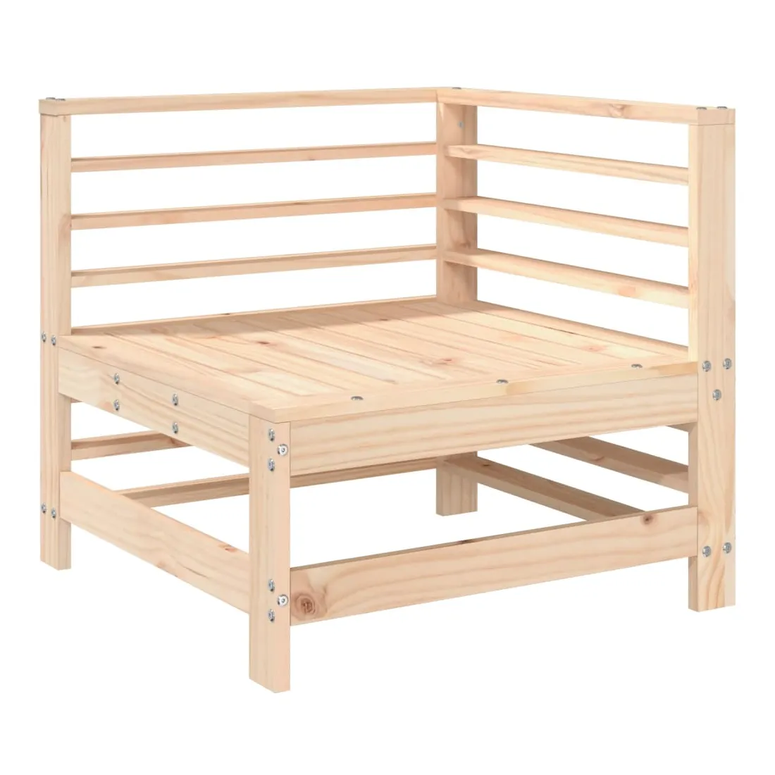 Ce salon de jardin en bois, qui se démarque par son design à lattes, sera un excellent supplément à votre jardin, patio ou terrasse pour profiter d'un moment agréable avec votre famille ou vos amis. Bois de pin massif : le bois de pin massif est un matériau naturel magnifique. Le bois de pin a un grain droit et les nœuds donnent au matériau son aspect caractéristique et rustique.Cadre robuste et stable : les cadres en bois rendent l'ensemble de salon robuste et stable pour une utilisation quotidienne à l'extérieur.Design modulaire : le canapé est flexible et facile à déplacer. Vous pouvez le combiner avec d'autres segments modulaires de la boutique en ligne pour créer vos propres configurations de salon de jardin ! Bon à savoir :Pour que vos meubles d'extérieur restent beaux, nous vous recommandons de les protéger avec une housse imperméable.Les coussins ne sont pas inclus dans la livraison.