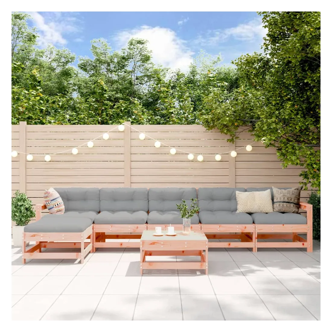 Ce salon de jardin en bois, qui se démarque par son design à lattes, sera un excellent supplément à votre jardin, patio ou terrasse pour profiter d'un moment agréable avec votre famille ou vos amis. Bois de douglas massif : le bois de douglas massif est un bois très durable qui fonctionne bien pour l'extérieur. Le bois de douglas est également suffisamment solide pour être travaillé avec un minimum de soin, même sous l'influence des intempéries.Expérience d'assise confortable : le dossier ajoute un confort d'assise supplémentaire au canapé d'extérieur.Design modulaire : le canapé est flexible et facile à déplacer. Vous pouvez le combiner avec d'autres segments modulaires de la boutique en ligne pour créer vos propres configurations de salon de jardin ! Bon à savoir :Pour que vos meubles d'extérieur restent beaux, nous vous recommandons de les protéger avec une housse imperméable.Les coussins ne sont pas inclus dans la livraison.
