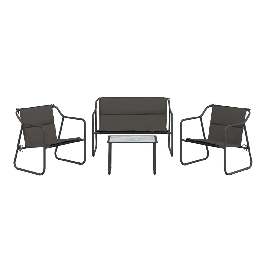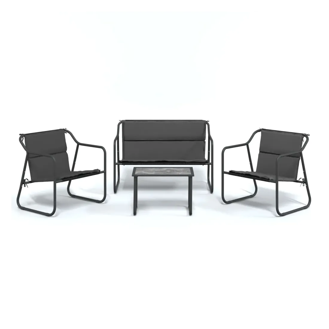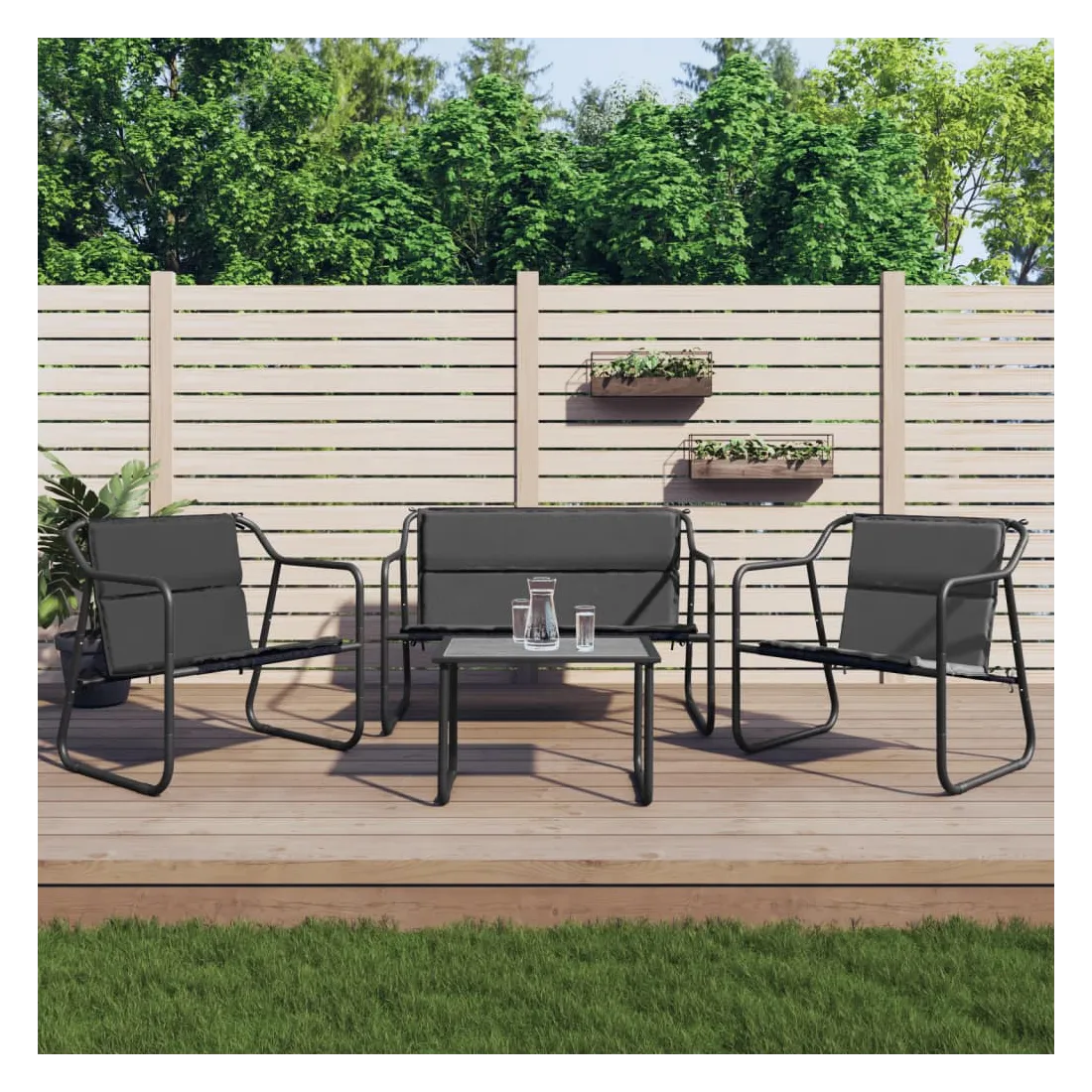 Cet ensemble de salon de jardin tendance, au design élégant et contemporain, est un excellent choix pour vous détendre dans votre jardin. Matériau durable : le tissu en textilène permet à l'air de circuler librement à travers lui tout en étant résistant aux rayons UV. Le textilène est donc idéal pour les temps chauds. En tant que matériau durable et solide, il est très résistant aux déchirures, aux perforations et aux moisissures.Cadre robuste et stable : les cadres en acier rendent l'ensemble de salon robuste et stable pour une utilisation quotidienne à l'extérieur.Expérience d'assise confortable : la chaise et le banc, dotés d'un dossier incliné et d'un siège profond, sont parfaits pour éliminer toute votre pression et votre fatigue. De plus, le coussin bien rembourré offre du confort pendant votre temps d'assise.Table pratique : la table robuste est parfaite pour placer des repas, des boissons et d'autres objets décoratifs. Remarque :Pour que vos meubles d'extérieur restent beaux, nous vous recommandons de les protéger avec une housse imperméable.