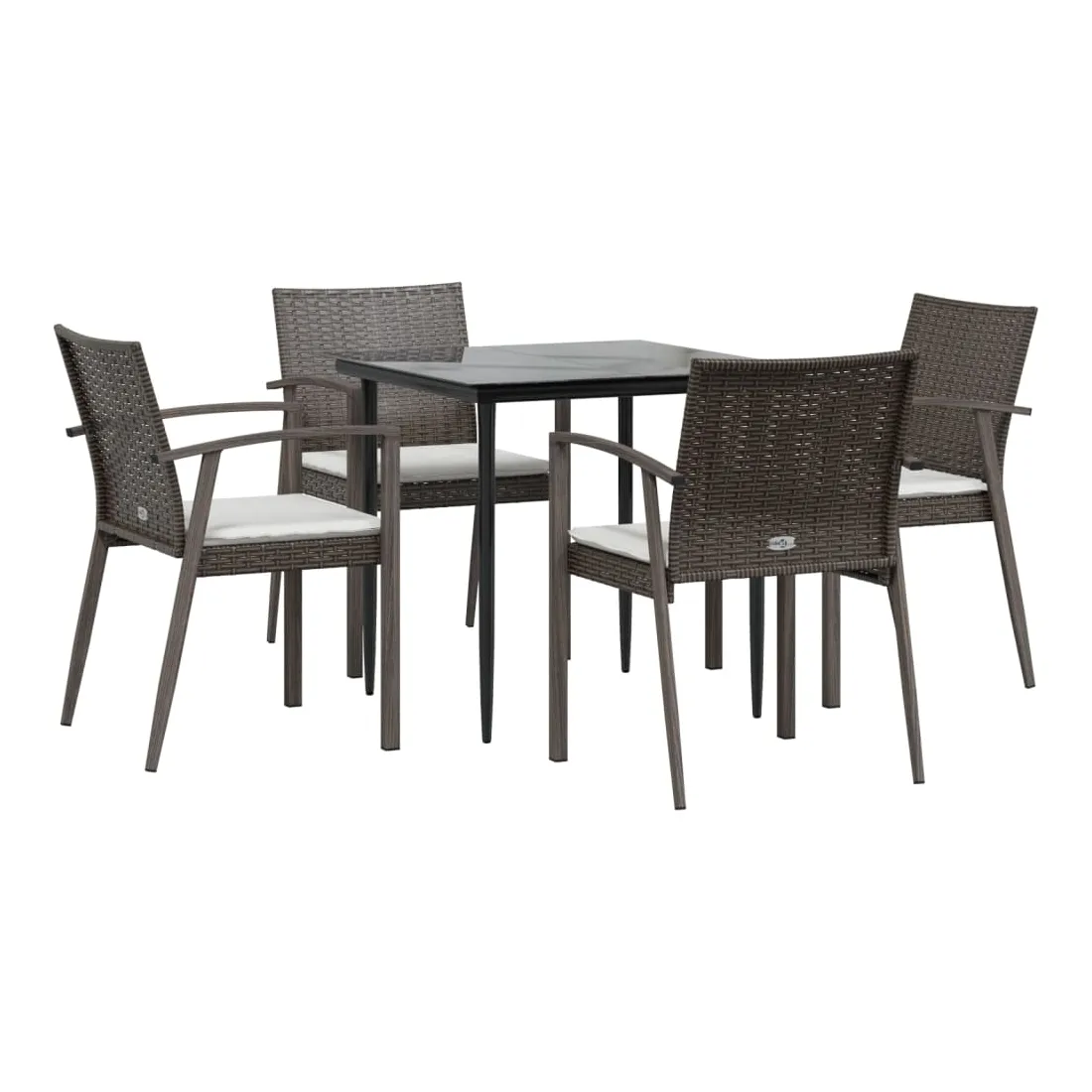 Cet ensemble à manger de jardin, combinant à la fois style et fonctionnalité, est sûrement destiné à être la pièce maîtresse de votre jardin, terrasse et de tout autre espace de vie. Matériau résistant aux intempéries : la résine tressée, également connue sous le nom de rotin poly, résiste aux intempéries et est facile à nettoyer. Elle reste belle à l'extérieur pendant une longue période. Elle offre une excellente qualité, commodité et un aspect esthétique.Cadre robuste et stable : les cadres en acier rendent l'ensemble à manger robuste et stable pour une utilisation quotidienne à l'extérieur.Dessus de table pratique : le plateau lisse de la table à manger est en verre trempé facile à nettoyer avec un chiffon humide. De plus, il offre un excellent support pour contenir vos repas, boissons et autres objets décoratifs.Assise confortable : la chaise de salle à manger est conçue avec des accoudoirs pour vous offrir une expérience d'assise confortable. Le coussin de siège épais et rembourré offre un confort ultime pendant votre temps d'assise. Remarque :Pour que vos meubles d'extérieur restent beaux, nous vous recommandons de les protéger avec une housse imperméable.