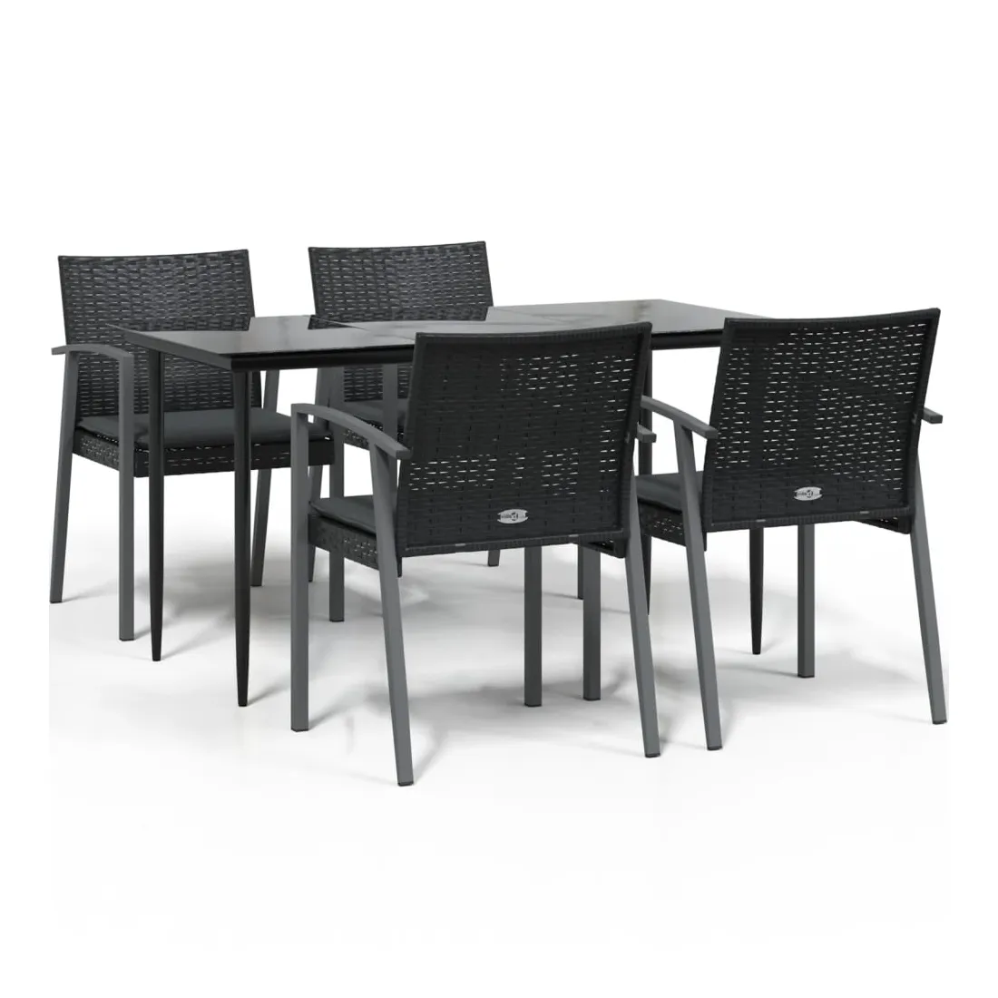 Cet ensemble à manger de jardin, combinant à la fois style et fonctionnalité, est sûrement destiné à être la pièce maîtresse de votre jardin, terrasse et de tout autre espace de vie. Matériau résistant aux intempéries : la résine tressée, également connue sous le nom de rotin poly, résiste aux intempéries et est facile à nettoyer. Elle reste belle à l'extérieur pendant une longue période. Elle offre une excellente qualité, commodité et un aspect esthétique.Cadre robuste et stable : les cadres en acier rendent l'ensemble à manger robuste et stable pour une utilisation quotidienne à l'extérieur.Dessus de table pratique : le plateau lisse de la table à manger est en verre trempé facile à nettoyer avec un chiffon humide. De plus, il offre un excellent support pour contenir vos repas, boissons et autres objets décoratifs.Assise confortable : la chaise de salle à manger est conçue avec des accoudoirs pour vous offrir une expérience d'assise confortable. Le coussin de siège épais et rembourré offre un confort ultime pendant votre temps d'assise. Remarque :Pour que vos meubles d'extérieur restent beaux, nous vous recommandons de les protéger avec une housse imperméable.