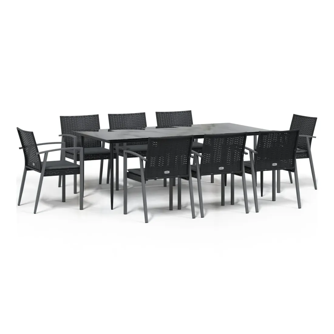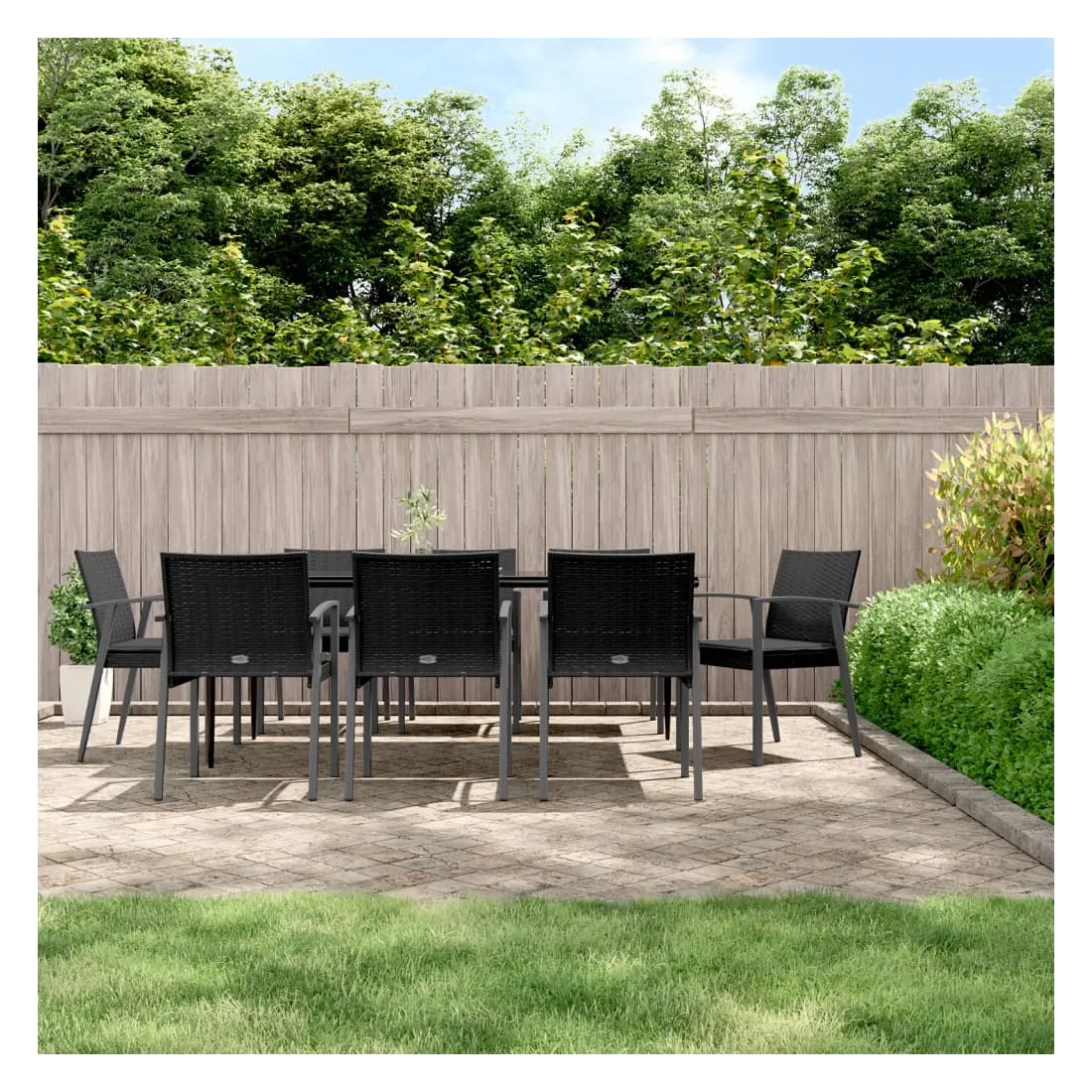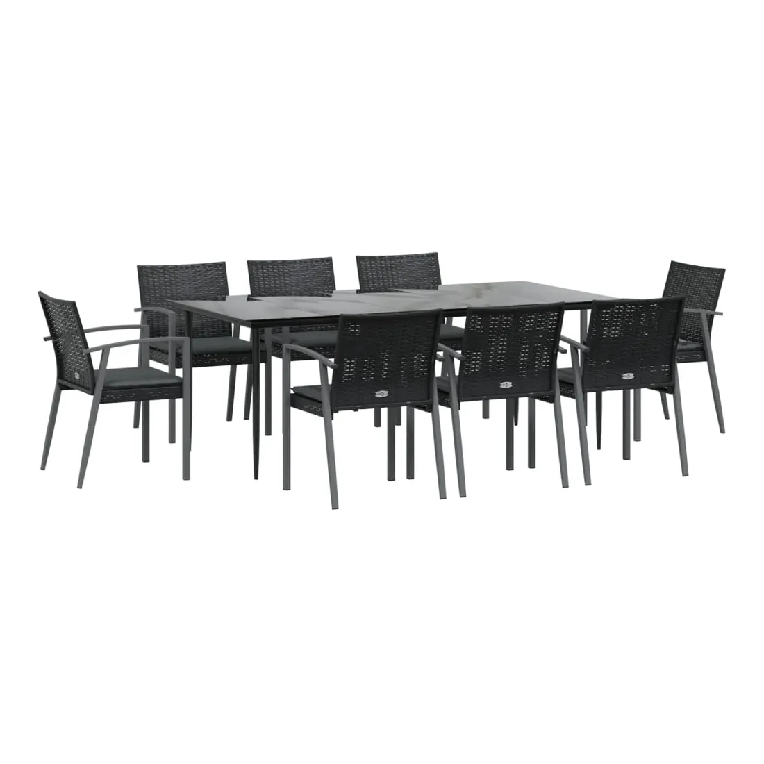 Cet ensemble à manger de jardin, combinant à la fois style et fonctionnalité, est sûrement destiné à être la pièce maîtresse de votre jardin, terrasse et de tout autre espace de vie. Matériau résistant aux intempéries : la résine tressée, également connue sous le nom de rotin poly, résiste aux intempéries et est facile à nettoyer. Elle reste belle à l'extérieur pendant une longue période. Elle offre une excellente qualité, commodité et un aspect esthétique.Cadre robuste et stable : les cadres en acier rendent l'ensemble à manger robuste et stable pour une utilisation quotidienne à l'extérieur.Dessus de table pratique : le plateau lisse de la table à manger est en verre trempé facile à nettoyer avec un chiffon humide. De plus, il offre un excellent support pour contenir vos repas, boissons et autres objets décoratifs.Assise confortable : la chaise de salle à manger est conçue avec des accoudoirs pour vous offrir une expérience d'assise confortable. Le coussin de siège épais et rembourré offre un confort ultime pendant votre temps d'assise. Remarque :Pour que vos meubles d'extérieur restent beaux, nous vous recommandons de les protéger avec une housse imperméable.