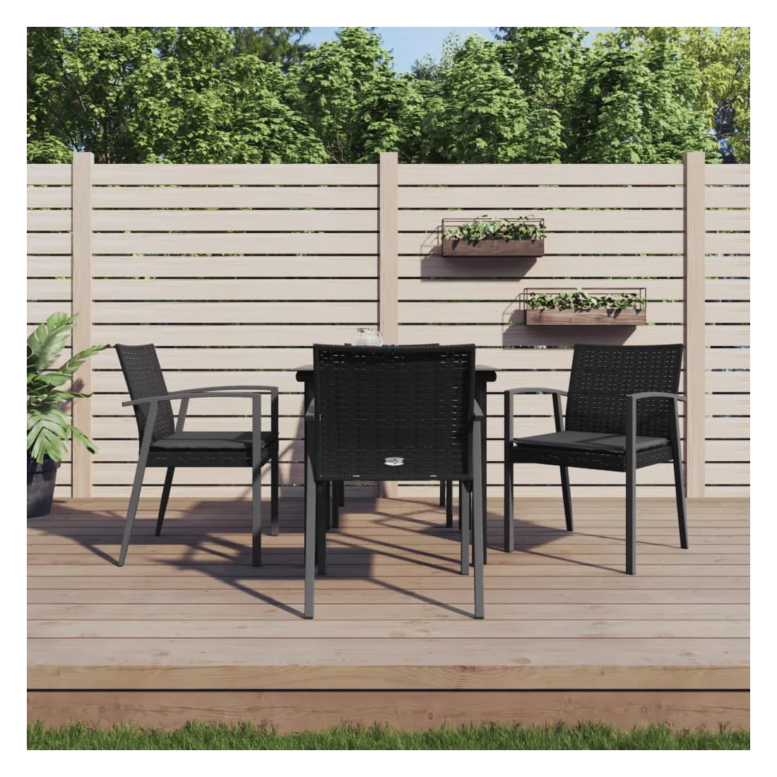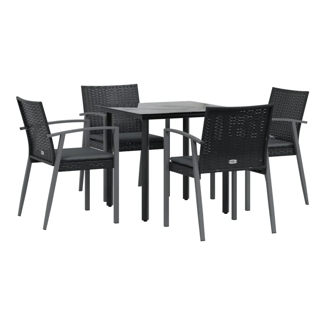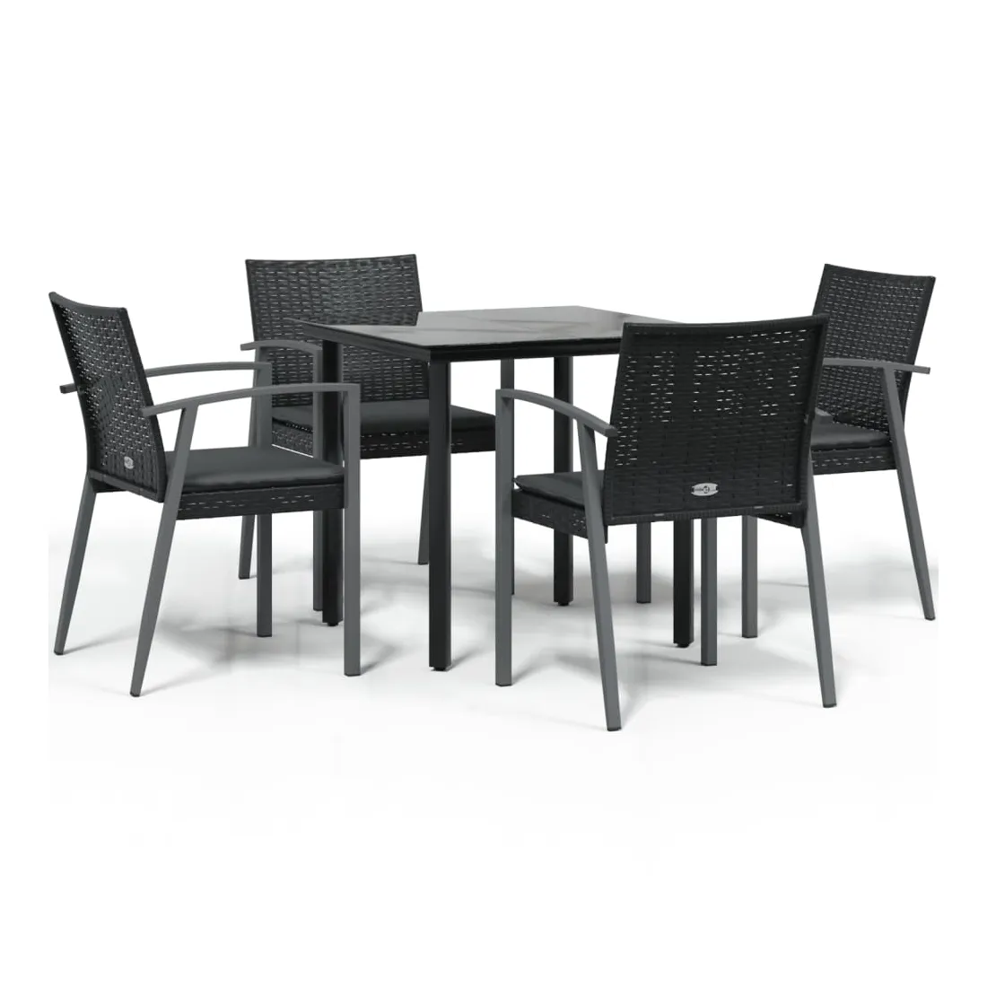 Cet ensemble à manger de jardin, combinant à la fois style et fonctionnalité, est sûrement destiné à être la pièce maîtresse de votre jardin, terrasse et de tout autre espace de vie. Matériau résistant aux intempéries : la résine tressée, également connue sous le nom de rotin poly, résiste aux intempéries et est facile à nettoyer. Elle reste belle à l'extérieur pendant une longue période. Elle offre une excellente qualité, commodité et un aspect esthétique.Cadre robuste et stable : les cadres en acier rendent l'ensemble à manger robuste et stable pour une utilisation quotidienne à l'extérieur.Dessus de table pratique : le plateau lisse de la table à manger est en verre trempé facile à nettoyer avec un chiffon humide. De plus, il offre un excellent support pour contenir vos repas, boissons et autres objets décoratifs.Assise confortable : la chaise de salle à manger est conçue avec des accoudoirs pour vous offrir une expérience d'assise confortable. Le coussin de siège épais et rembourré offre un confort ultime pendant votre temps d'assise. Remarque :Pour que vos meubles d'extérieur restent beaux, nous vous recommandons de les protéger avec une housse imperméable.