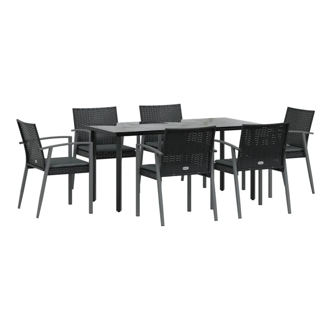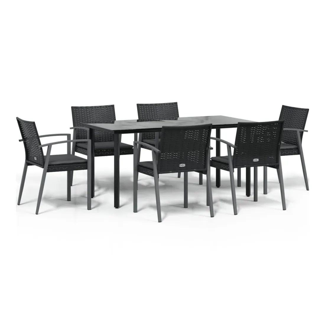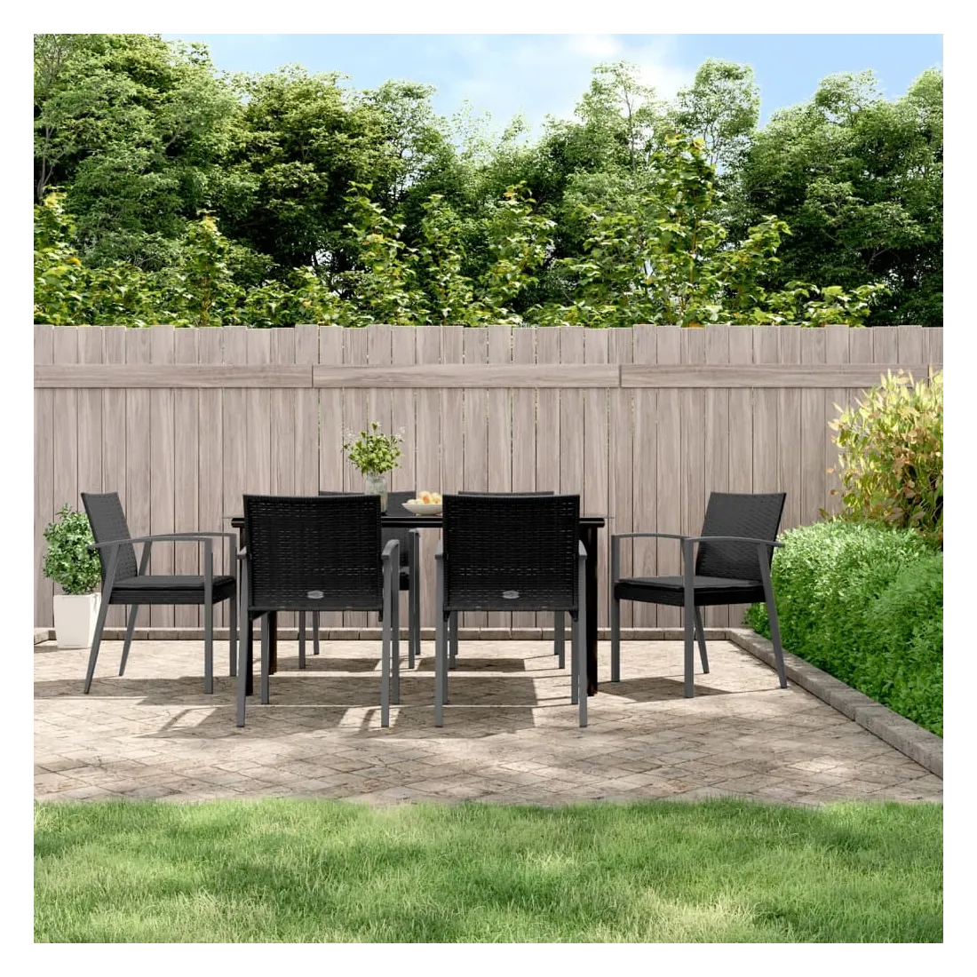 Cet ensemble à manger de jardin, combinant à la fois style et fonctionnalité, est sûrement destiné à être la pièce maîtresse de votre jardin, terrasse et de tout autre espace de vie. Matériau résistant aux intempéries : la résine tressée, également connue sous le nom de rotin poly, résiste aux intempéries et est facile à nettoyer. Elle reste belle à l'extérieur pendant une longue période. Elle offre une excellente qualité, commodité et un aspect esthétique.Cadre robuste et stable : les cadres en acier rendent l'ensemble à manger robuste et stable pour une utilisation quotidienne à l'extérieur.Dessus de table pratique : le plateau lisse de la table à manger est en verre trempé facile à nettoyer avec un chiffon humide. De plus, il offre un excellent support pour contenir vos repas, boissons et autres objets décoratifs.Assise confortable : la chaise de salle à manger est conçue avec des accoudoirs pour vous offrir une expérience d'assise confortable. Le coussin de siège épais et rembourré offre un confort ultime pendant votre temps d'assise. Remarque :Pour que vos meubles d'extérieur restent beaux, nous vous recommandons de les protéger avec une housse imperméable.