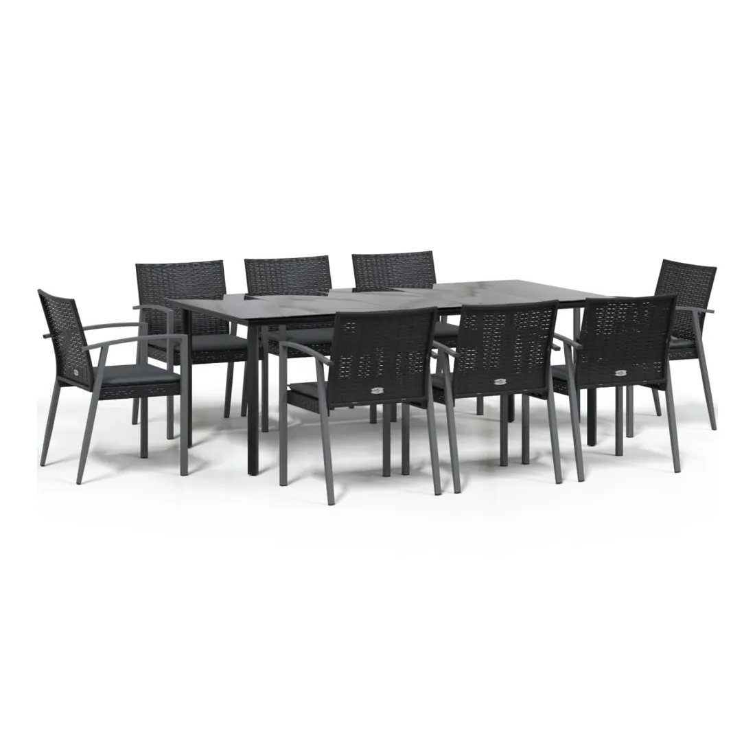 Cet ensemble à manger de jardin, combinant à la fois style et fonctionnalité, est sûrement destiné à être la pièce maîtresse de votre jardin, terrasse et de tout autre espace de vie. Matériau résistant aux intempéries : la résine tressée, également connue sous le nom de rotin poly, résiste aux intempéries et est facile à nettoyer. Elle reste belle à l'extérieur pendant une longue période. Elle offre une excellente qualité, commodité et un aspect esthétique.Cadre robuste et stable : les cadres en acier rendent l'ensemble à manger robuste et stable pour une utilisation quotidienne à l'extérieur.Dessus de table pratique : le plateau lisse de la table à manger est en verre trempé facile à nettoyer avec un chiffon humide. De plus, il offre un excellent support pour contenir vos repas, boissons et autres objets décoratifs.Assise confortable : la chaise de salle à manger est conçue avec des accoudoirs pour vous offrir une expérience d'assise confortable. Le coussin de siège épais et rembourré offre un confort ultime pendant votre temps d'assise. Remarque :Pour que vos meubles d'extérieur restent beaux, nous vous recommandons de les protéger avec une housse imperméable.