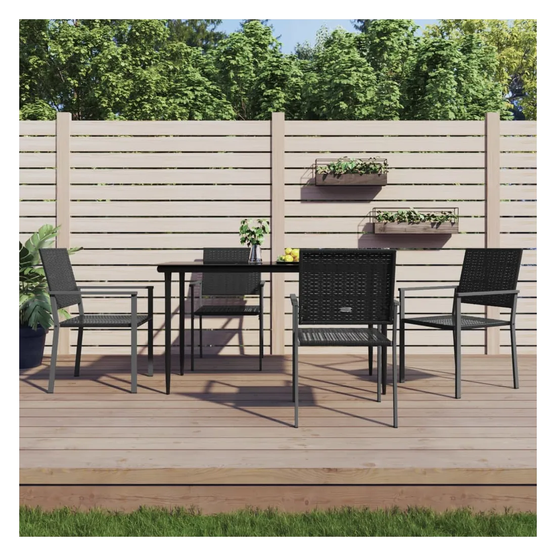Ensemble à manger de jardin 5 pcs résine tressée acier
