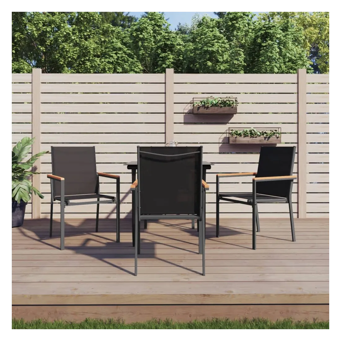 - Matériau : textilène, acier enduit de poudre, WPC