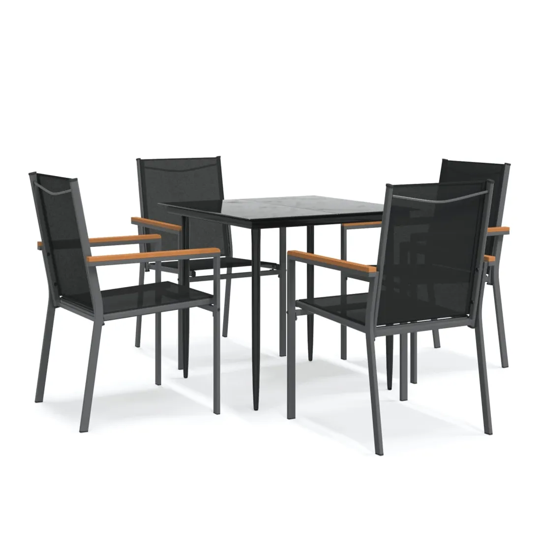 Détendez-vous et profitez d'un bon thé de l'après-midi ou de n'importe quel repas avec votre famille et vos amis autour de cet ensemble de salle à manger de jardin ! Matériau durable : le tissu en textilène permet à l'air de circuler librement à travers lui tout en étant résistant aux rayons UV. Le textilène est donc idéal pour les temps chauds. En tant que matériau durable et solide, il est très résistant aux déchirures, aux perforations et aux moisissures.Cadre robuste et stable : les cadres en acier rendent l'ensemble à manger robuste et stable pour une utilisation quotidienne à l'extérieur.Dessus de table pratique : le plateau lisse de la table à manger est en verre trempé facile à nettoyer avec un chiffon humide. De plus, il offre un excellent support pour contenir vos repas, boissons et autres objets décoratifs.Assise confortable : la chaise à manger est conçue avec un dossier et des accoudoirs pour vous offrir une expérience d'assise confortable. Remarque :Pour que vos meubles d'extérieur restent beaux, nous vous recommandons de les protéger avec une housse imperméable.