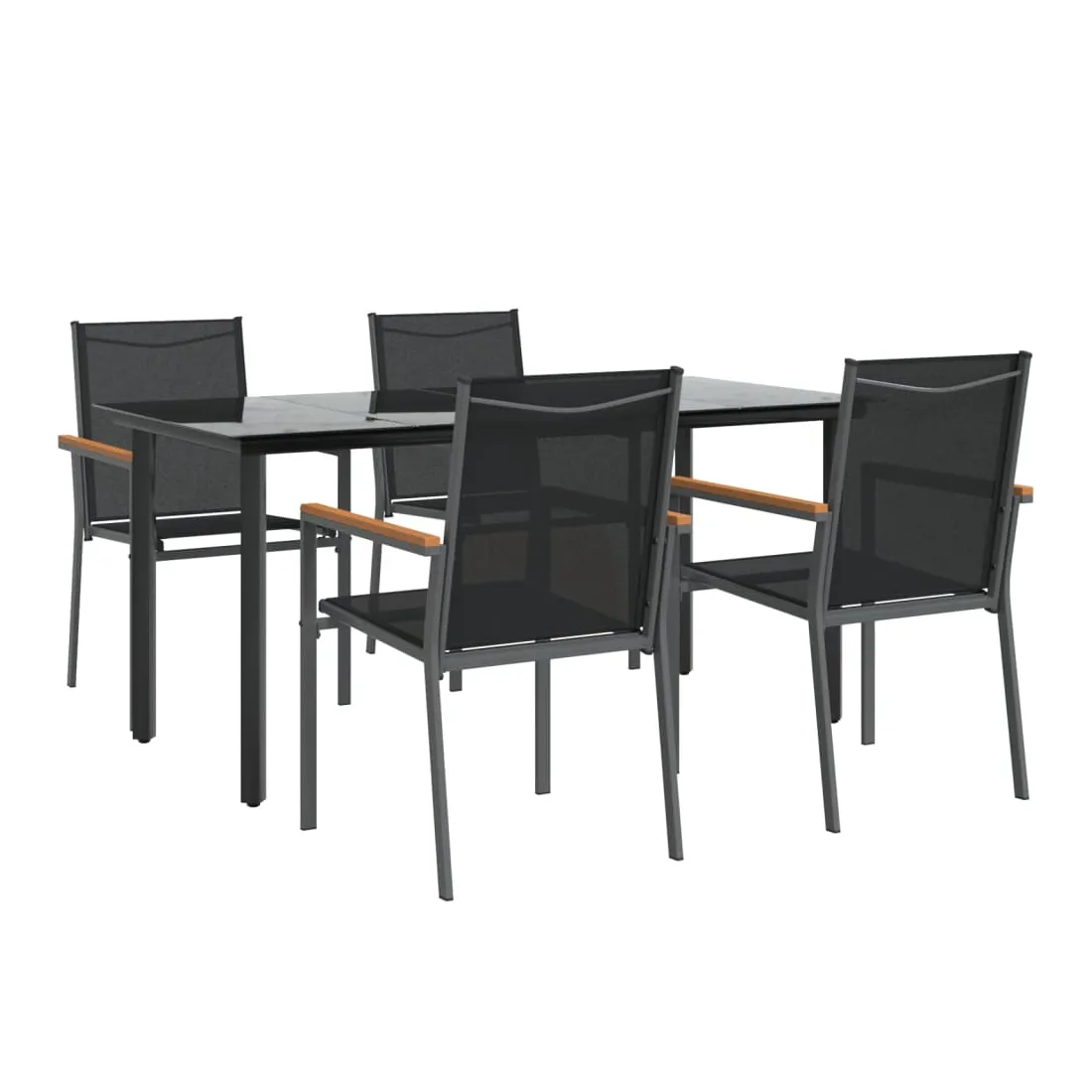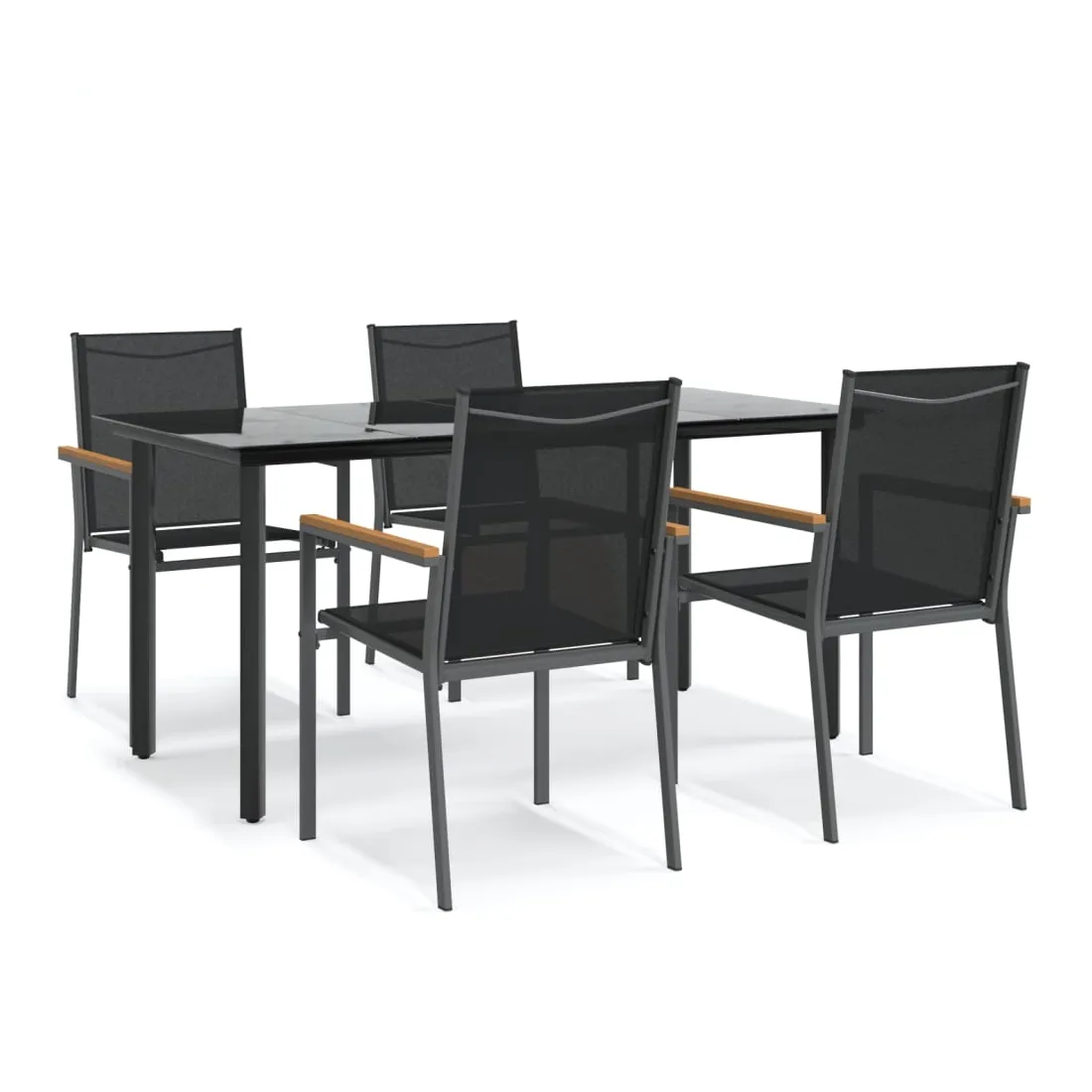 Détendez-vous et profitez d'un bon thé de l'après-midi ou de n'importe quel repas avec votre famille et vos amis autour de cet ensemble de salle à manger de jardin ! Matériau durable : le tissu en textilène permet à l'air de circuler librement à travers lui tout en étant résistant aux rayons UV. Le textilène est donc idéal pour les temps chauds. En tant que matériau durable et solide, il est très résistant aux déchirures, aux perforations et aux moisissures.Cadre robuste et stable : les cadres en acier rendent l'ensemble à manger robuste et stable pour une utilisation quotidienne à l'extérieur.Dessus de table pratique : le plateau lisse de la table à manger est en verre trempé facile à nettoyer avec un chiffon humide. De plus, il offre un excellent support pour contenir vos repas, boissons et autres objets décoratifs.Assise confortable : la chaise à manger est conçue avec un dossier et des accoudoirs pour vous offrir une expérience d'assise confortable. Remarque :Pour que vos meubles d'extérieur restent beaux, nous vous recommandons de les protéger avec une housse imperméable.