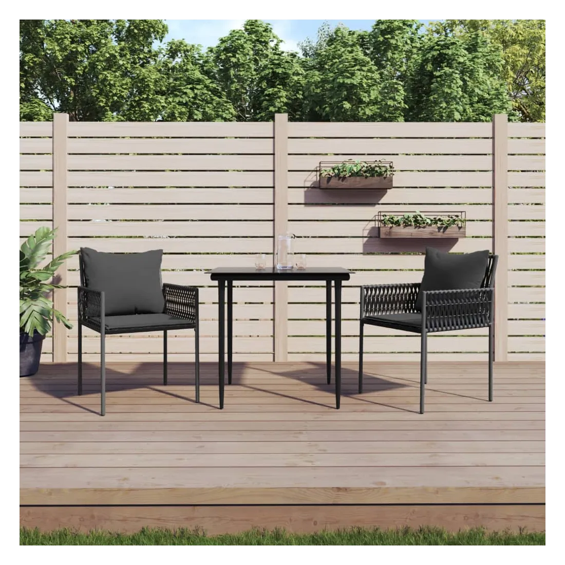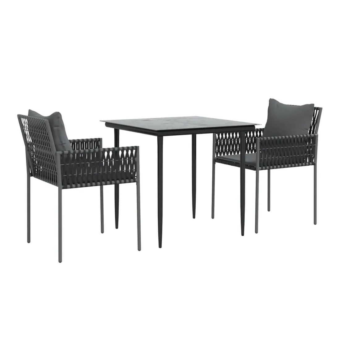 Détendez-vous et profitez d'un bon thé de l'après-midi ou de n'importe quel repas avec votre famille et vos amis autour de cet ensemble de salle à manger de jardin ! Matériau durable : la résine tressée, également connue sous le nom de rotin poly, résiste aux intempéries et est facile à nettoyer. Elle reste belle à l'extérieur pendant une longue période. Elle offre une excellente qualité, commodité et un aspect esthétique.Cadre robuste et stable : les cadres en acier rendent l'ensemble à manger robuste et stable pour une utilisation quotidienne à l'extérieur.Dessus de table pratique : le plateau lisse de la table à manger est en verre trempé facile à nettoyer avec un chiffon humide. De plus, il offre un excellent support pour contenir vos repas, boissons et autres objets décoratifs.Assise confortable : la chaise à manger est conçue avec un dossier et des accoudoirs pour vous offrir une expérience d'assise confortable. De plus, les coussins épais rembourrés offrent un confort ultime pour votre temps d'assise. Remarque :Pour que vos meubles d'extérieur restent beaux, nous vous recommandons de les protéger avec une housse imperméable.