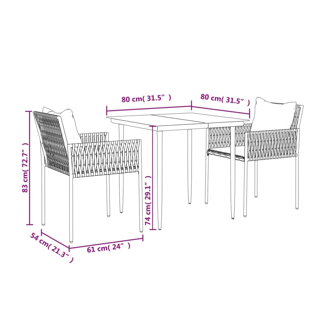 - Dimensions : 80 x 80 x 74 cm (L x l x H)
