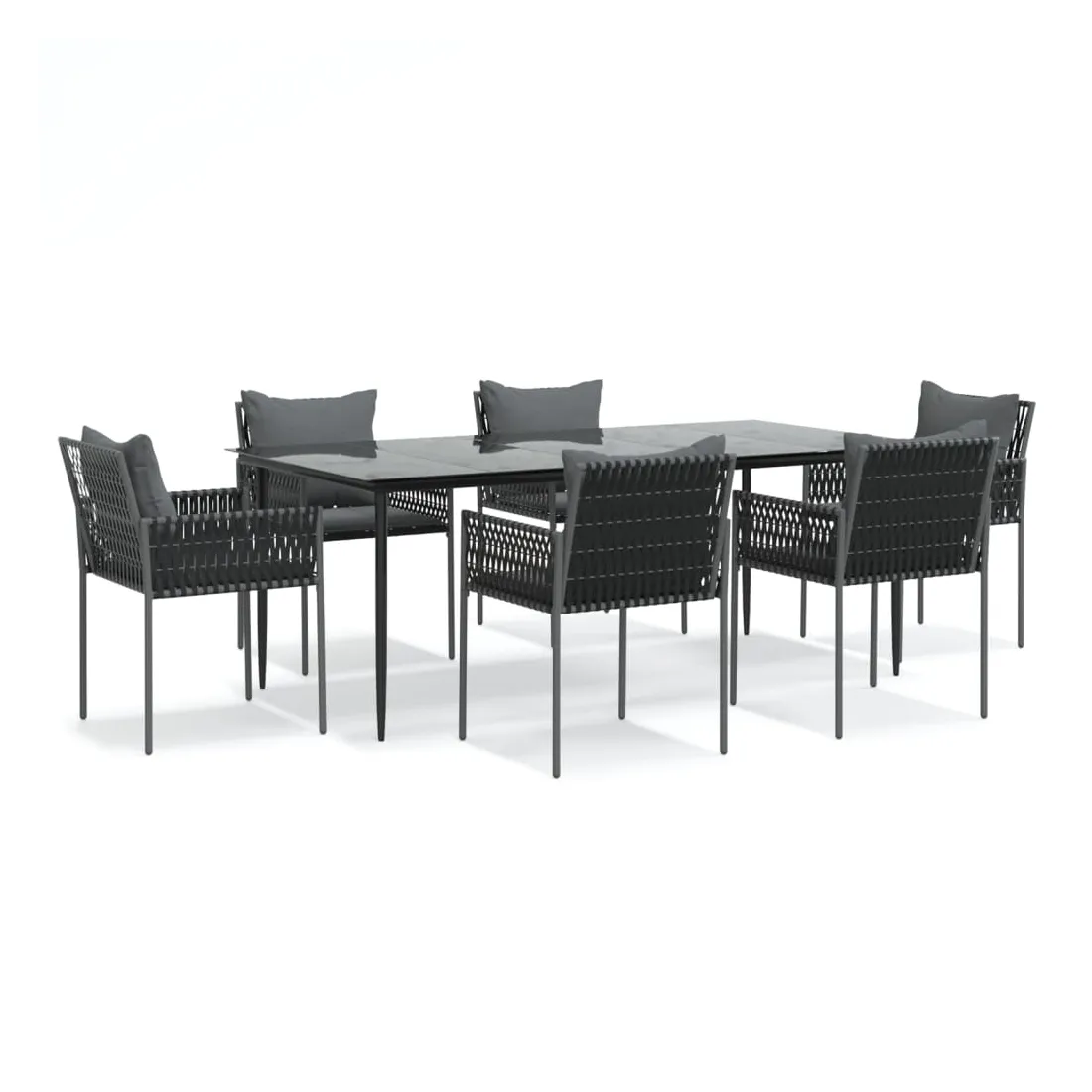 Détendez-vous et profitez d'un bon thé de l'après-midi ou de n'importe quel repas avec votre famille et vos amis autour de cet ensemble de salle à manger de jardin ! Matériau durable : la résine tressée, également connue sous le nom de rotin poly, résiste aux intempéries et est facile à nettoyer. Elle reste belle à l'extérieur pendant une longue période. Elle offre une excellente qualité, commodité et un aspect esthétique.Cadre robuste et stable : les cadres en acier rendent l'ensemble à manger robuste et stable pour une utilisation quotidienne à l'extérieur.Dessus de table pratique : le plateau lisse de la table à manger est en verre trempé facile à nettoyer avec un chiffon humide. De plus, il offre un excellent support pour contenir vos repas, boissons et autres objets décoratifs.Assise confortable : la chaise à manger est conçue avec un dossier et des accoudoirs pour vous offrir une expérience d'assise confortable. De plus, les coussins épais rembourrés offrent un confort ultime pour votre temps d'assise. Remarque :Pour que vos meubles d'extérieur restent beaux, nous vous recommandons de les protéger avec une housse imperméable.