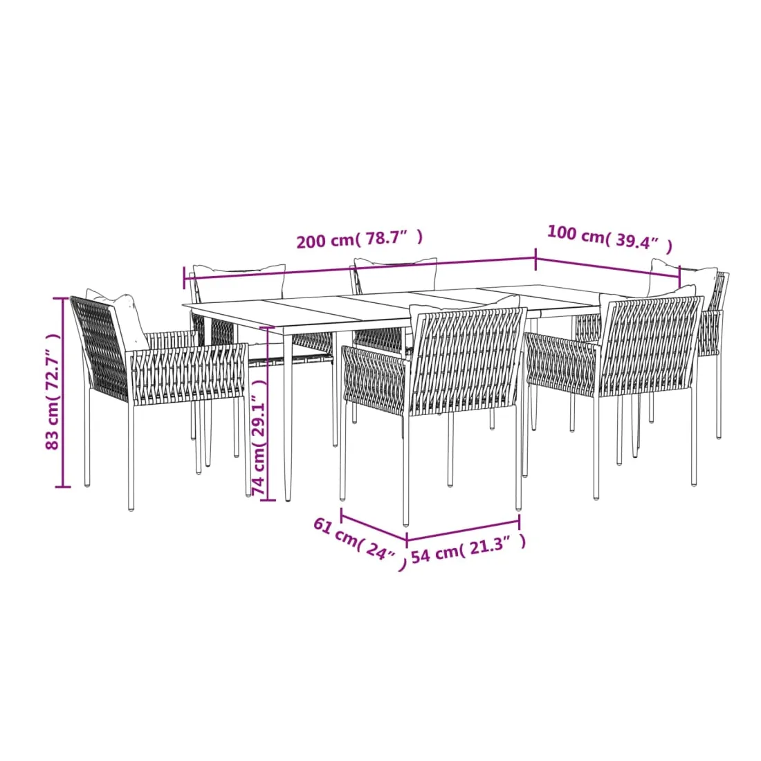 - Dimensions : 200 x 100 x 74 cm (L x l x H)